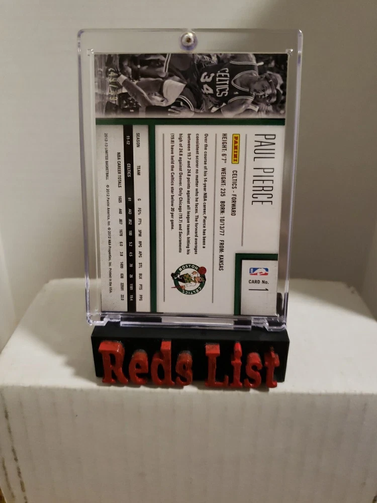 2012-13 Panini Limited Silver Spotlight #1 Paul Pierce 49/49 Boston Celtics HOF Condition is "Very Good". Shipped with USPS Gound Advantage Due to my schedule The Post Office is close before I head to work and close when I get off work Sunday - Friday I'm only able to go to the Post Office Saturday, but I sometimes get off early so if payment is not received by night before they won't be shipped until the following off day so for any delay of shipping i will try my best to get it off on time I'm not a professional grader...... The majority of my cards are packed fresh open by myself, however I've bought many cards over the years to build my sets. I bought cards from card shops, card shows, Instagram, and even eBay to add to my collection. Now my collection to me isn't what it used to be, so I'm slowly getting rid of my collection. If you're looking for cards let me know I have thousands. I didn't check every card for flaws, my feedback speaks for itself on my other pages. I use the term VERY GOOD good to cover myself LOOK AT THE THE PICTURES. And for everyone who expects every card to be a mint 9 or 10 very good. It could have a ding here or a rough corner there, ask for pics What U See Is What U Get. Additional cards will be $1 Wait for invoice if not I will not give discount If you are looking for other cards hit me up, I have singles, Rookies , Jersey's , Auto's , Numbered, some sets i have a lot. Thank you, if you have any questions just ask. Good luck.