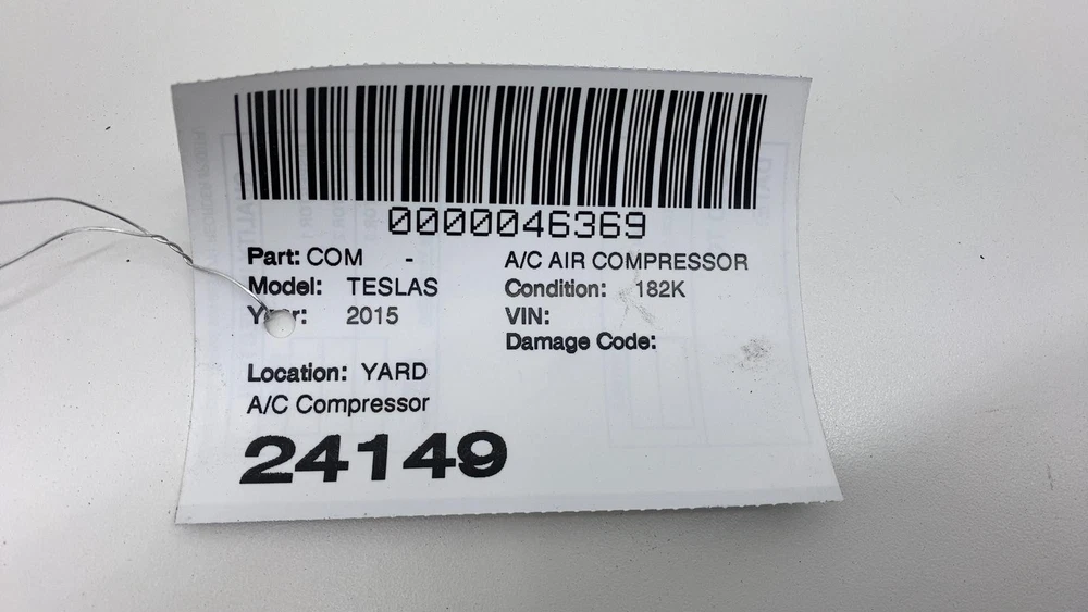 Donut Auto Dismantling Donut Auto Dismantling Rancho Cordova, CA Business Hours (PST/PDT) Mon - Fri 8am - 5pm Closed Sat & Sun A/c Air Compressor Year: 15 Model: TESLA S Side: Type: Used Category: ND Condition: 182k Vehicle Stock #: 24149 Part Stock #: 0000046369 Additional notes: A/c Compressor Interchange: Also fits: Search for more parts from this donor vehicle Search for more parts for TESLA S Dear Valued Customers Before ordering, please verify the part number and compare the physical details of your part with the photos in our listing. Tesla sometimes changes parts within the same model year, so even if the year matches, variations may exist. Examine all photos and read the description. Please contact us and ask any questions you have about the item. What you see in the pictures is what you will receive. Item are sold as Pictured in our ads, All the damages are marked in pictures with colored markings ........ indicated scratches, O indicate dents/dings view all photos and description. All Parts come with a 30-Day warranty Compatibility We are not responsible for compatibility, please order parts with the same part number to avoid delays and fitment issues in your purchase. Always verify O.E.M part numbers check fitment. Shipping & Return Policy For LTL and freight shipments of large items like Battery Packs, Seats, Doors, Trunks, Hoods, and other sizable body parts, a commercial address is mandatory . This must be a business equipped with a dock or forklift. Please note that deliveries cannot be made to restaurants, office buildings, or hotels. Please allow 5-11 business days from the shipping date to receive freight items. If a forklift is not available to unload your package, please ensure that you added liftgate service fee to your order. Residential deliveries have an extra charge required by LTL to cover liftgate usage and city ordinance. Be advised not all LTL freight companies offer lift gate services in every town especially in rural areas. If you do not have a commercial address or a proper residential address reach out to us to work things out LTL items can always be held at your local hub and made available for pickup. We offer free local pickup Monday through Friday, from 8:00 AM to 5:00 PM. What separates us from our competitors As Pioneers in the Tesla used parts market Donut Auto Parts is leading in the industry. We have been specializing in Tesla's for over 5 years. Our Staff are highly trained and experienced Tesla specialists. We strive to help you solve all your part needs. Local Customers For our local customers we provide installation on battery packs and drive units purchase. Drive unit and battery pack installations come with a 60 day warranty . All parts are fully tested. Using the industries leading tools, we also provide installation of other parts. Please reach out to us directly for more information. Be Advised Programming may be required for most electronic components. Donut Auto Parts is not responsible for any labor costs and other charges such as programming. NO RESTOCKING FEE Payment Payment must be submitted within 48 hours after purchase time. We have a Same handling time when paid by 2pm pst and 3-day handling time for LTL freight items. Feedback and Rating We always Strive to earn positive feedback. If you encounter an issue with one of our items, please contact us before leaving any feedback or opening a case give us the opportunity to solve your order issue. We strive to provide excellent customer service to ensure that everyone is satisfied, and to gain happy and returning customers! ALLOW US TO RESOLVE ISSUES BEFORE LEAVING YOUR FEEDBACK PLEASE CONTACT US FIRST Airbag Notification If the item above is an airbag, I certify this airbag is not subject to recall and will be shipped in accordance with hazmat shipping requirements . Powered by Checkmate