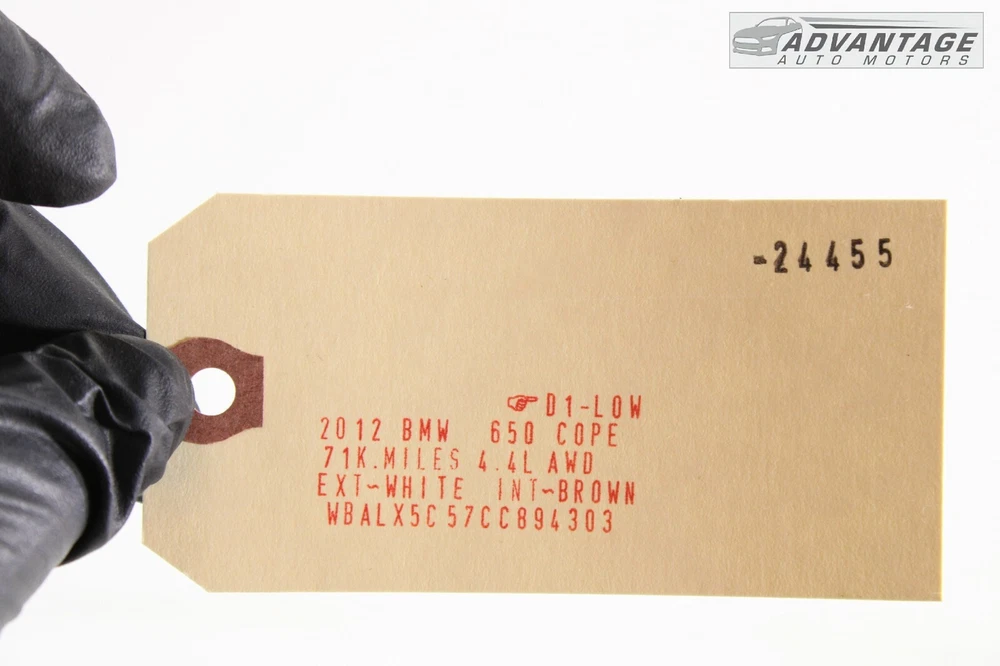 ADVANTAGE AUTO MOTORS DONOR VEHICLE: 2012 BMW 650XI F13 COUPE ENGINE: 4.4L V8 DOHC GAS N63 TRANSMISSION: AUTOMATIC TRANSMISSION DRIVE TYPE: ALL WHEEL DRIVE (AWD) BODY TYPE: BASE COUPE 2-DOOR MILEAGE: 71K MILES COLOR: EXTERIOR COLOR: ALPINE WHITE III (300 ) INTERIOR COLOR/TRIM: LEATHER / BROWN VIN NUMBER: WBALX5C57CC894303 ATTENTION! PLEASE READ THE DESCRIPTION OF THE PRODUCT AND PLEASE READ OUR RULES BEFORE BUYING. MAKE SURE THE SPARE PARTS YOU WANT TO PURCHASE IS FIT FOR YOUR CAR. IF YOU ARE NOT SURE WHETHER THIS PART FITS YOUR CAR, CONTACT US OR CHECK THE INFORMATION WITH THE DEALER USING VIN NUMBER. YOU WILL RECEIVE EVERYTHING IS SPECIFIED IN THE DESCRIPTION AND IN THE PHOTOS. ALL SPARE PARTS ALREADY REMOVED FROM THE CAR AND ARE IN THE WAREHOUSE ON THE SHELVES. IF YOU BUY AN ITEM, IT WILL BE IMMEDIATELY PACKED AND SHIPPED. IF YOU NEED AN INVOICE FOR AN INSPECTION OR OTHER CHECK, YOU CAN CONTACT US ABOUT IT AND WE WILL SEND AN INVOICE TO YOUR E-MAIL. IF YOU HAVE ANY PROBLEMS: THE PRODUCT WILL NOT BE DELIVERED ON TIME OR WILL COME DAMAGED OR YOUR ORDER WILL BE LOST, DO NOT HURRY TO LEAVE NEGATIVE FEEDBACKS, PLEASE CONTACT US AND WE WILL SOLVE YOUR PROBLEM ASAP. IN THE LAST PHOTO ON THE TAG, WE INDICATE THE NUMBER OF SPARE PARTS FOR OUR EMPLOYEES, THAT IS IF IT SAYS QUANTITY: 4 ON THE TAG, IT MEANS WE HAVE 4 SUCH SPARE PARTS. TO GET 2 OR MORE PARTS, YOU MUST SELECT THE QUANTITY YOU WANT AT CHECKOUT. SHIPPING: FREE SHIPPING ONLY EXTENDED TO SMALL SPARE PARTS. DELIVERY FOR PARTS LIKE: ENGINE, TRANSMISSION, DOOR, HOOD, BUMPER, AND OTHER LARGE PARTS WILL BE SPECIFIED IN THE DESCRIPTION . INTERNATIONAL SHIPPING: DELIVERY COST TO ALASKA, HAWAI, PUERTO RICO AND GUAM $ 50 (SMALL SPARE PARTS). IF YOU WANT TO PURCHASE LARGE SPARE PARTS, PLEASE CONTACT US BEFORE YOU PURCHASE FOR SHIPPING COST. DELIVERY ABROAD IS ALSO POSSIBLE. CONTACT US TO FIND OUT THE PRICE AND TIME OF DELIVERY. EXPEDITE SHIPPING: IF YOU URGENTLY NEED SPARE PARTS, WE CAN SEND US USING OVERNIGHT OR 2 DAYS DELIVERY. CONTACT US AND WE WILL PROVIDE YOU WITH EXACT SHIPPING COST. RETURNS: WE HAVE A 30 DAY RETURN POLICY. BUYER PAYS RETURN SHIPPING IF REASON FOR RETURN: 1- ORDERED BY MISTAKE; 2- CHANGE MY MIND; 3- FIND THE BEST PRICE; 4- SPARE PARTS NOT FIT; 5- JUST DO NOT LIKE IT. IF THE BUYER HAS RETURNED THE PRODUCT AND THE PART NUMBERS DO NOT MATCH THE NUMBERS ON THE PHOTOS OR HAS RETURNED THE SPARE PARTS WITH DAMAGES OR THE BUYER OPENED THE PART, THEN ACCORDING eBay RULES, THE SELLER HAS THE RIGHT TO CHARGE 50% OF THE PRICE OF THE PRODUCT WARRANTY: WE HAVE 30 DAYS WARRANTY ON ENGINES, TRANSMISSIONS, TRANSFER CASES AND DIFFERENTIALS. NO LABOR COST REIMBURSEMENT. THANKS FOR YOUR INTEREST AND LOOKING FOR OUR DETAILS. AAM PARTS!!