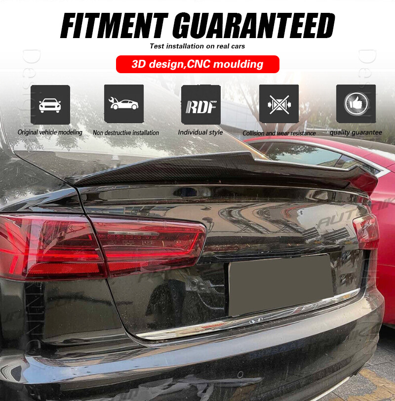 Fitment:Fit for Audi A6 C7 Base/Sline S6 Sedan 2012 2013 2014 2015 2016 2017 2018 2019 Feature: 1. No drill or any modification required, easy installation with glue tape the spoiler could be removed later without damaging the paint. 2.3*3 Twill Weave Carbon Fiber material with high Quality UV-Protected Clear Coating to prevent from yellowing and hold its high glossy finish 3.Car rear trunk spoiler are designed to factory specifications for easy installation and clean,installed with self-adhesive tape.peel off the tape on the back, then stick the spoiler on the lid of the trunk. It is easy to clean in daily use. 4.New Manufacturing Process, Vacuum moulding, more lightweight and durable than other ordinary carbon parts 5.Enhance Visual Impact, Create An New Iconic Racing Look And Set Fitment:Fit for Audi A6 C7 Base/Sline S6 Sedan 2012 2013 2014 2015 2016 2017 2018 2019 Feature: 1. No drill or any modification required, easy installation with glue tape the spoiler could be removed later without damaging the paint. 2.3*3 Twill Weave Carbon Fiber material with high Quality UV-Protected Clear Coating to prevent from yellowing and hold its high glossy finish 3.Car rear trunk spoiler are designed to factory specifications for easy installation and clean,installed with self-adhesive tape.peel off the tape on the back, then stick the spoiler on the lid of the trunk. It is easy to clean in daily use. 4.New Manufacturing Process, Vacuum moulding, more lightweight and durable than other ordinary carbon parts 5.Enhance Visual Impact, Create An New Iconic Racing Look And Set Your Car Apart From Similar Models On Street 6.Maintain the stability of the vehicle when in high speeds, reducing wind resistance, saving fuel and keeping safety Specification: Material:Carbon Fiber Color:Carbon Fiber Black Pattern:3X3 twill weaven Packaging:Polyfoam box Attachment Method:Adhesive Installation : With glue tape Package Includes: 1x Carbon Fiber Trunk Spoiler and glue tape Delivery details Payment and TAX Warranty Policy Return Policy Contact us Delivery details NOTE: The shipping fee is only for the mainland of each country, it does not include the overseas territories, such as Virgin Islands (U.S.) , Puerto Rico, Hawaii , French Reunion Island, etc. But on ebay, when buyers from Puerto Rico and overseas territories , the shipping fee is equal to United States, it is NOT correct,. please contact us for correct shipping fee, or we will cancel the order. Sorry for the inconvenience, and thanks for your cooperation. 1. If you want to upgrade the shipping, please contact us before making payment, we will revise the shipping fee. 2. We will ship according to your Ebay address. Please make sure it is correct and include phone number for delivery. If you want to know the exact shipping time , please contact us . Payment and TAX 1.We accept Multiple Payment Methods Available: Credit Card, Debit Card, Gift Card, Apple Pay, Goggle Pay, PayPal and PayPal Cred. 2.Please leave note for your special request (e.g. Colors or Size) in ebay note when you pay the order. 3.Your must complete the payment within 7 days or Ebay will automatically open unpaid item case For US Buyer:The invoice value of each item is less than 800USD ,so you no need to pay any tariff . NON-US Buyer Note: Most countries are tax free based on our invoices, if tax is required, which will be buyer's responsibility. Warranty Policy We Warranty Our Product Within the Limited Warranty Policy Specified on Ebay. Please Email us if ou have any question regarding the warranty policy on a specific item. Most of the items are Aftermarket Parts and they are intended for off-road usage only, therefore no installation instruction will be included, Professional installation are Highly Recommended. We are not responsible for any damages to the item or the vehicle that occur during the installation of the item.Also, Please Make Sure Proper Installation is Performed as we are not responsible for item being missing or flew off after the installation. if you don't think the item can stay on the car properly, please do not attempt to drive the car with it and please check with professional shops/mechanics or contact us for assistance. Return Policy We Accept Returns Within the Return Period On Ebay. Return Authorization/Return Approval is Required For Every Return. So If you Wish to Make a Return On Your Purchase. Please Contact us Before You Send The item back For any damages occured to the item upon arrival, Please notify us within 5 days of the delivery so we can take proper action to fix the issue. So Please Kindly inspect and check the item condition upon arrival.For Any other Return Inquries, You can contact us within the return period to obtain return authorization/return approval. In case of return, the merchandise needs to be returned in original condition with origi- nal packaging in order to be eligible for an exchange or a refund. Items must be not opened in their original package. Any mark of installation, mounting, cutting, scratch or using will not be allowed. Contact us 1.We are trying our best to explain all details of the products here! If you have any question, please feel free to contact us by Ebay message, and We will get back to you within 24-48 hours. 2.Customer satisfaction is our NO.1 priority. If you are not happy with the item that you purchase, please contact us first. We will try our best to solve the problem with you.Please leave us a positive feedback if you receive the item.Please do not leave negative or neutral feedback without any contact.If you haven't received item in 30 days, please contact us and we will arrange refund.We appreciate your business.Happy Bidding & Have a nice day! 3.Working hours: From 8 a.m. to 6 p.m. from Monday to Friday. From 8 a.m. to 12 a.m. on Saturday morning Holiday/Rest time: Saturday afternoon and Sunday