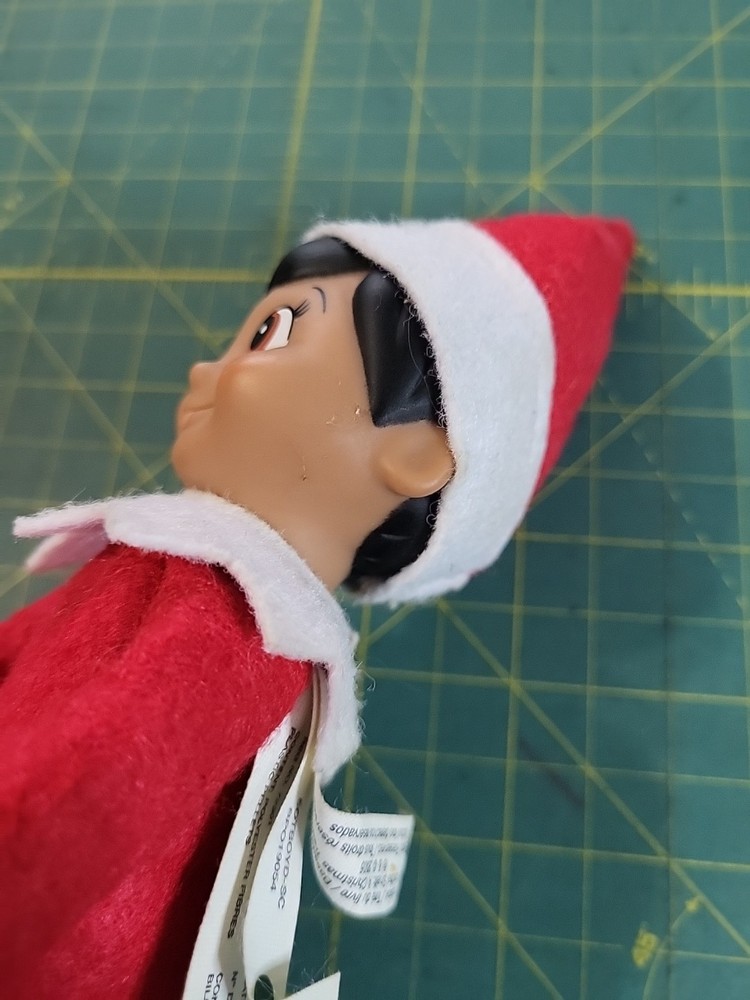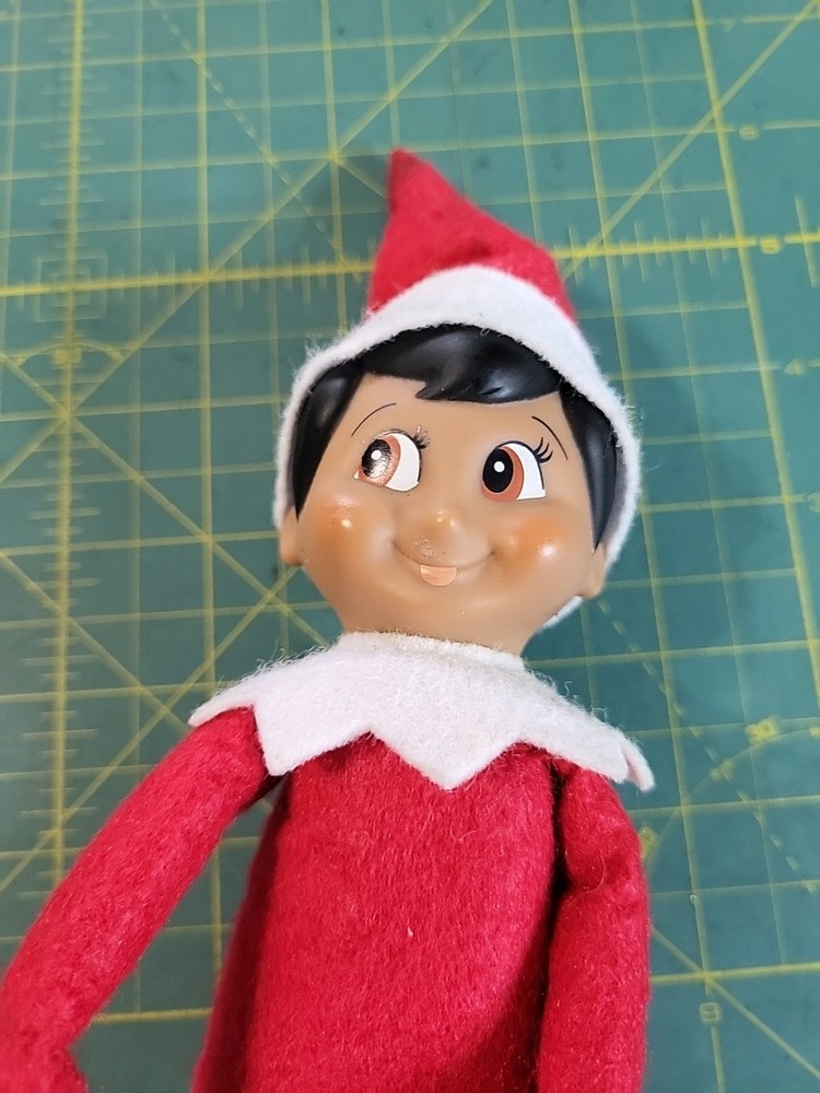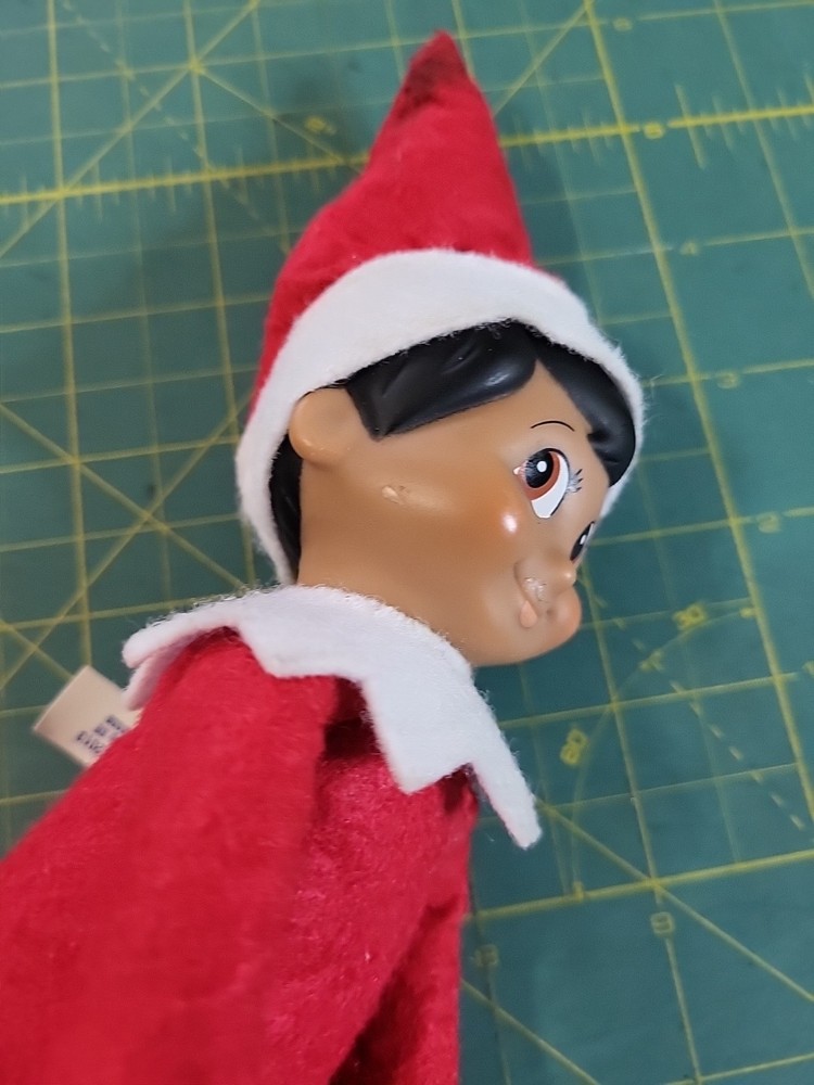 This is a 11" Elf on the Shelf Girl plush from 2013, part of the Elf on the Shelf collection. The elf has a hard face and is designed as a knee hugger. It is made of mixed materials in China and features the theme of Elves & Fairies. Perfect for Christmas and novelty collectors.
