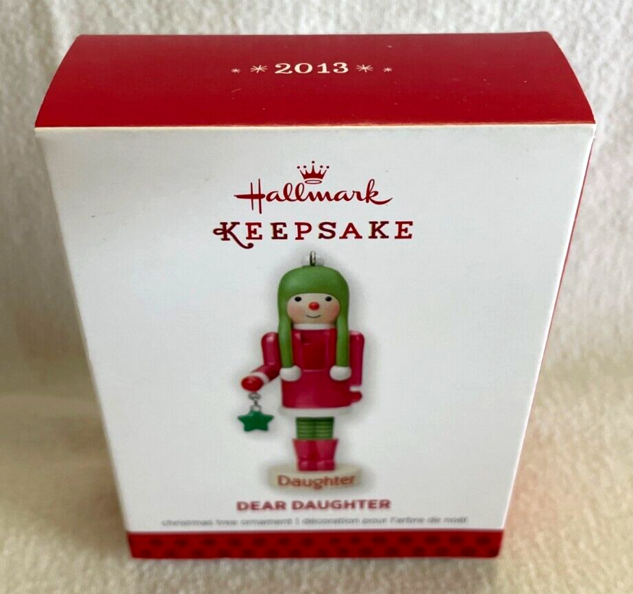 2013 DEAR DAUGHTER HALLMARK Keepsake Ornament. Daughter wears her pretty red dress , green winter hat, and red boots . She holds a green Christmas star. Loving Gift for your precious Daughter - for Christmas, birthday, etc.