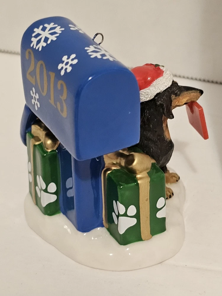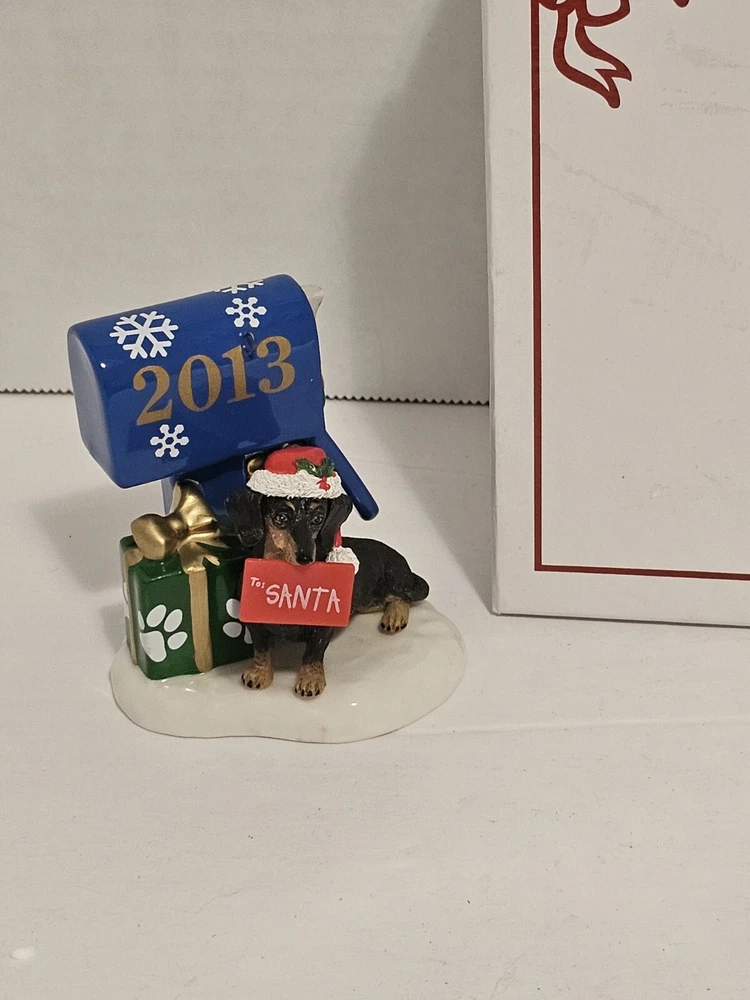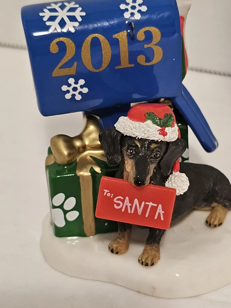 Year Manufactured:2013Material:Mixed MaterialsSubject:DogOccasion:ChristmasType:OrnamentDog Breed:DachshundTheme:DachshundBrand:Danbury MintCollection:Ornaments