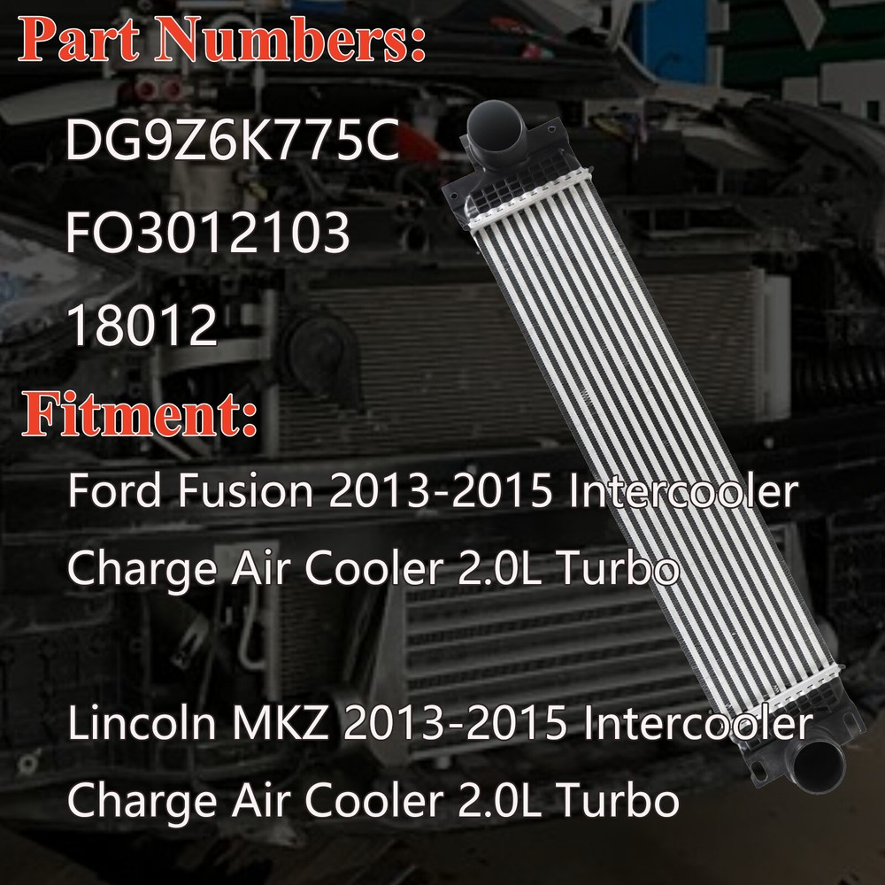 Store Home New Listing Ending Soon Sale items View Feedback Contact us Shock Absorbers & Spring Power Steering Pump Rack & Pinion Engine Rebuild Kit Store Categories Other Power Steering Pump Ignition Coils Turbocharger Power Steering Rack and Pinion Starter Alternator Overhaul Kit Power Steering Gear Box Engine Mount Timing Chain Kit AC Compressor Engine Assembly Fuel Pump Diesel Fuel Injectors Catalytic Converter Display Panel Monitor Transmission Valve Body Transfer Case Assembly Wiring Harness Gasket Kit Headlight Headlamps AC Condenser Intercooler 1pc Intercooler For Ford Fusion 2.0T 2013-2015 DG9Z6K775C 1pc Intercooler For Ford Fusion 2.0T 2013-2015 DG9Z6K775C Product Description 1pc Intercooler For Ford Fusion 2.0T 2013-2015 DG9Z6K775C Specifications Material: Aluminum Color: Silver Placement on Vehicle: Front OE Number: DG9Z6K775C,FO3012103,18012 Fitment: For Ford Fusion 2013-2015 Intercooler/Charge Air Cooler 2.0L Turbo For Lincoln MKZ 2013-2015 Intercooler/Charge Air Cooler 2.0L Turbo Package Include: One Piece of Air Cooler Features: 1. Built to strict quality control standards 100% factory tested 2. IATF16949 3. 100% Compatible with OEM Parts, meets Original Equipment Manufacturer (OEM) Standards 4. The sturdy aluminum core ensures the durability of the product while providing excellent heat transfer. 5. Compact tube and fin construction ensuring better air flow and larger surface increasing the heat exchange 6. Perfect product fit, enabling fast and smooth installation. 7. Plastic tanks with reinforcing inner cross-bars, strengthened inlets and outlets and specially designed side panels to help against stress caused by high temperatures and mechanical tensions. Attention: 1) Align the installation holes with the fixed positions and use standard bolts for fastening. 2) When connecting the inlet and outlet ports with the engine hoses, they should be tight and there should be no air leakage. 3) Fix the pipelines and pipelines, and complete the installation. Note: During the installation of the intercooler, please do not damage the diffuser (fin) and damage the intercooler to ensure the heat dissipation capacity and sealing. Note: Professional Installation is Highly Recommended Installation Instruction is NOT Included About Us Payment Shipping Returns Contact Us About Us VEHICULOS Story: Mission: The mission of VEHICULOS automotive parts is to provide customers with excellent quality and reliability, ensuring their vehicles are always in optimal condition. We aim to be the preferred brand in the field of car maintenance and repair, offering unmatched value and trust to our customers. Philosophy: At VEHICULOS, we believe that every single automotive part plays a crucial role, influencing the overall performance and safety of the vehicle. Therefore, we strive for the perfect combination of exceptional quality, innovative technology, and superior service to meet the demand for high-standard automotive parts. Founder's Experience: The founder of VEHICULOS automotive parts, Cooper, is an automotive engineer and an expert passionate about car maintenance. He held key positions in renowned car manufacturers and aftermarket companies, accumulating extensive industry experience. However, he recognized the varying quality of automotive parts available in the market and was determined to create the VEHICULOS brand, offering reliable and high-quality parts to provide customers with worry-free maintenance and repair experiences. "Excellence in Quality, Confidence in Every Drive" - VEHICULOS Automotive Parts, infusing your vehicle with reliable power! VEHICULOS automotive parts stand out in a highly competitive market due to the following differentiating factors : 1,Superior Quality: VEHICULOS strictly controls every production process to ensure all parts meet the highest quality standards. We utilize premium materials and advanced manufacturing techniques, subjecting each component to rigorous testing and validation for durability, performance, and safety. 2,Innovative Technology: VEHICULOS continuously introduces innovative technologies, incorporating the latest advancements into the design and manufacturing of our parts. We strive to deliver products with outstanding performance and advanced features, meeting customers' expectations for enhanced vehicle performance and driving experience. 3,Customer Care: We understand the importance of customer satisfaction in vehicle maintenance and repair. Therefore, VEHICULOS always prioritizes customer needs. We provide professional pre-sales consultation and after-sales services, assisting customers in selecting the right parts for their vehicles and offering installation and maintenance guidance to ensure a worry-free user experience. 4,Reliability and Trust: VEHICULOS is renowned for its reliability and longevity. Our parts undergo stringent testing and validation to operate reliably under various conditions, providing customers with long-term performance and dependability assurance. By choosing VEHICULOS automotive parts, you gain the guarantee of exceptional quality, innovative technology, and reliability. We are committed to providing the best maintenance and repair solutions for your beloved vehicle, saving you time, money, and hassle, and ensuring your journey is safe and enjoyable. Payment 1,We accept PayPal payment, VISA, MasterCard , Debit Card through PayPal. 2,Payment should be completed within 4 (Four) days of auction closing. Or unpaid dispute will be filed for closing auction. 3,We will leave a positive feedback immediately after payment is received. We appreciate a positive feedback as much as you do. If for some reason there is any issue with the purchase, please contact us prior to leaving feedback, we will be glad to work together and provide a satisfying solution. Shipping When you find that the current warehouse is out of stock, please contact us, and we will provide more warehouse and shipping options. We will make every effort 