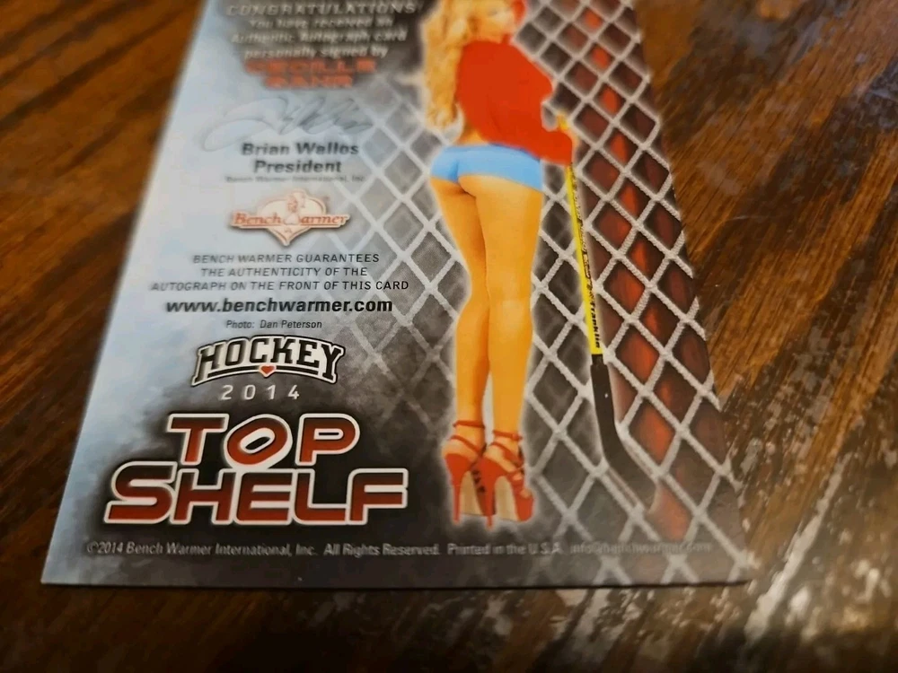 2014 Benchwarmer Hockey Top Shelf Autograph Silver Foil Card Cecille Gahr Playboy She is known for Beauty and the Geek (CW) and Bikini Destinations. Please, look at all the pictures. Please check out my other eBay accounts... https://www.ebay.com/usr/kimmyrael https://www.ebay.com/usr/matlac99 https://www.ebay.com/usr/lacr6837 https://www.ebay.com/usr/malac9440 https://www.ebay.com/usr/lacr_3567 https://www.ebay.com/usr/lacroki8 https://www.ebay.com/usr/lacroki9 Shipping only to the continental US unless you contact me first. Will combine shipping!!!