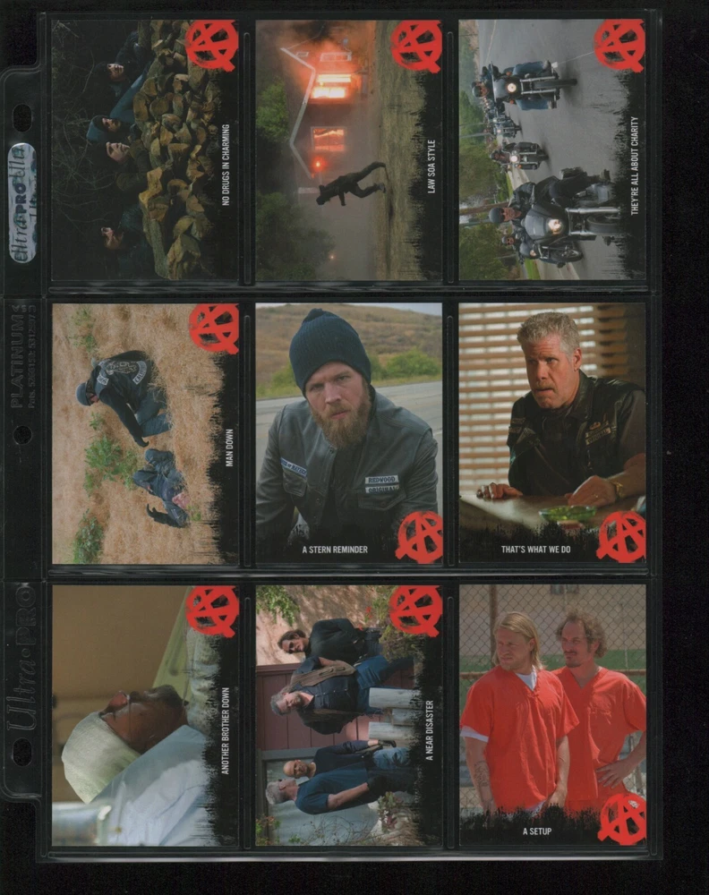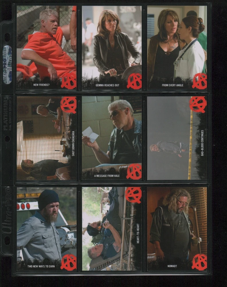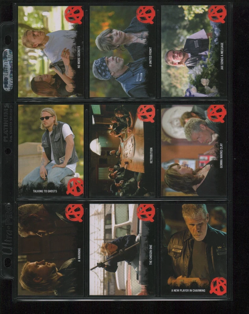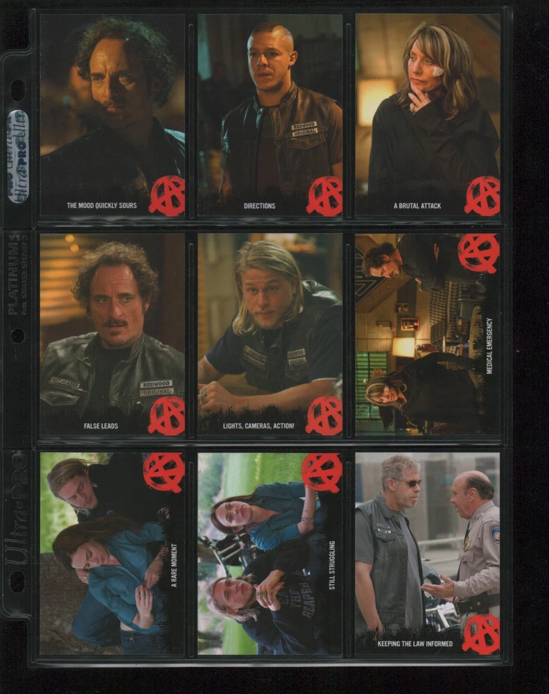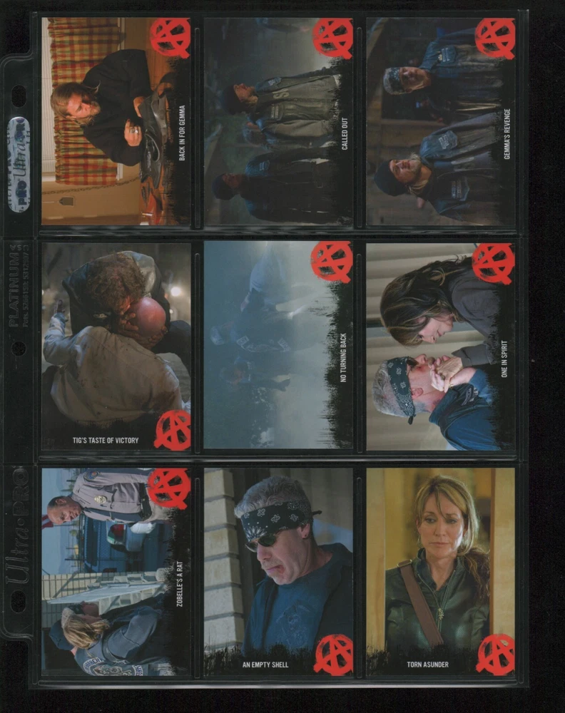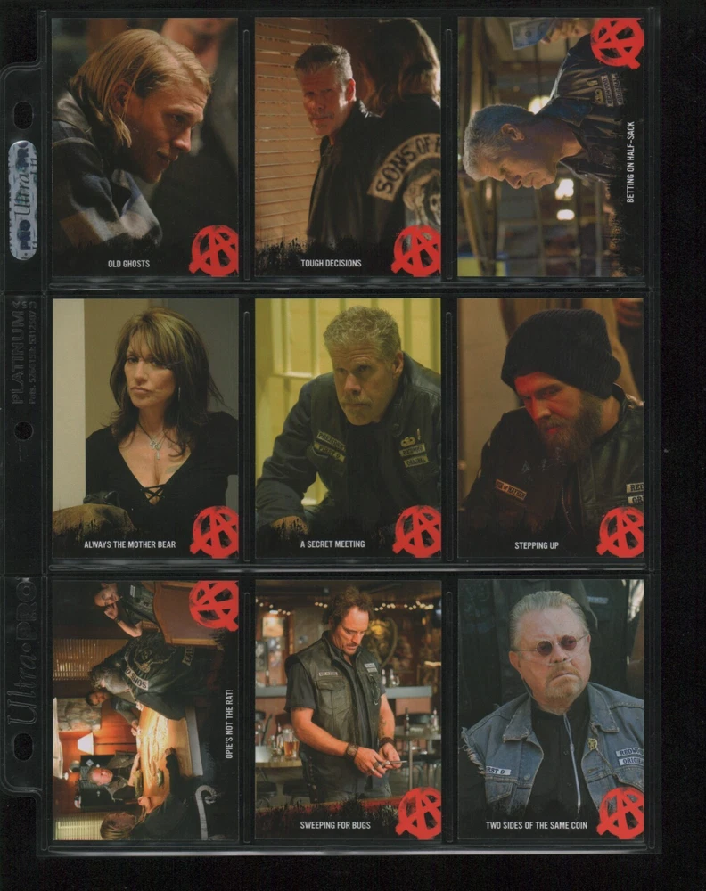 ITEM DESCRIPTION : 2014 Cryptozoic Sons of Anarchy Seasons 1-3 Base Set 1-100 + Character Bios #C05 & #C09 + Temporary Tattoo #TT-06 . See photos for details. IMAGINAIRE STORE: Formerly Simon Bourque Sports Cards. Since 1988, Imaginaire specializes in trading cards, stamps, collectibles, and memorabilia . SHIPPING COSTS: Combine items and save on shipping costs. Price varies depending on the size and weight of the parcel. Please note that all packages over $100 will be automatically sent via registered postal service with tracking number. NOTICE INFORMATION: PLEASE NOTE that p ayment must be received within 7 business days of the end of auction, unless prior arrangements have been made. Item(s) will be shipped within 2 business days. If you have any questions, please email us.
