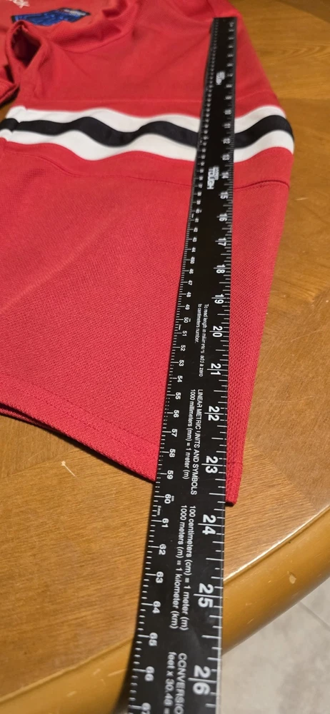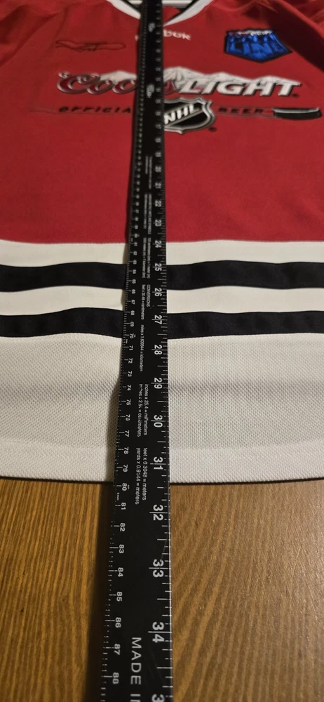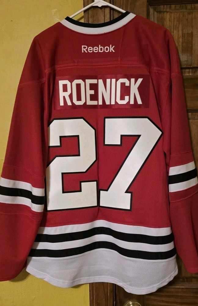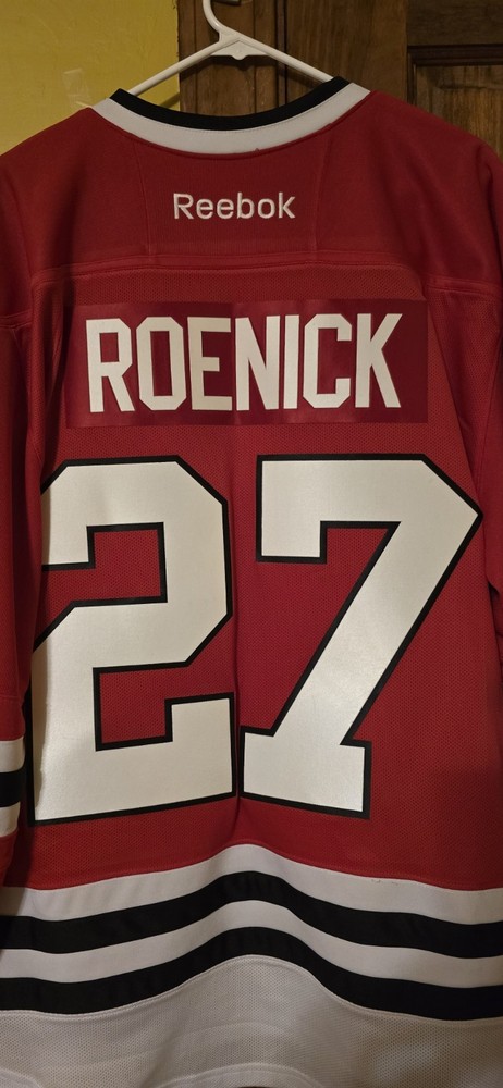 Product:JerseyLeague:National Hockey League (NHL)Color:RedBrand:ReebokTeam:Chicago BlackhawksPre & Post Season:Regular SeasonPlayer:Jeremy RoenickSize:LSport:Hockey