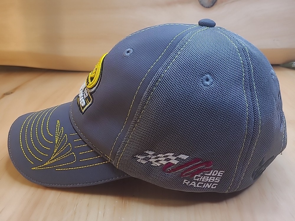 Show your support for Joe Gibbs Racing with this 2014 NASCAR Chase For The Sprint Cup Series Hat. Featuring the iconic team colors of gray and black, this unisex adult cap is officially licensed by NASCAR and is a must-have for any fan of the sport. The hat is designed with the team's logo on the front and is perfect for wearing to races or just as a casual accessory. Made in China, this cap is one size fits all and is ideal for any fan of the NASCAR Sprint Cup Series Champion. Whether you're a longtime fan or just getting started, this hat is a great way to show your support for your favorite team. Order now and add this stylish and functional cap to your collection!