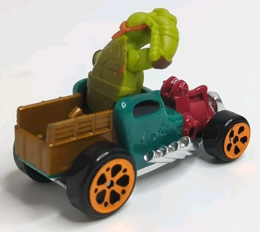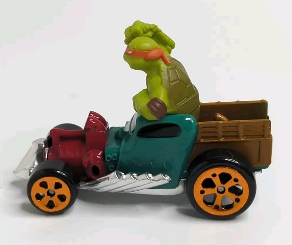 This 2014 Playmates Toys T-Machines action figure features Michelangelo in his Hot Rod vehicle, perfect for all occasions and ideal for children aged 4 years and up. The 1:32 scale model is made of plastic and is an original, licensed reproduction from the Teenage Mutant Ninja Turtles franchise. The multicolor car is designed with intricate details and comes without packaging. This Mikey in Hot Rod model is a great addition to any collection and is perfect for fans of the T-Machines series and the TV show.