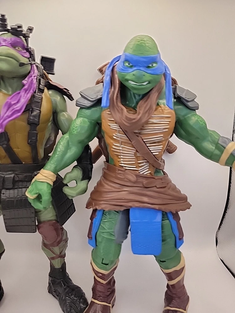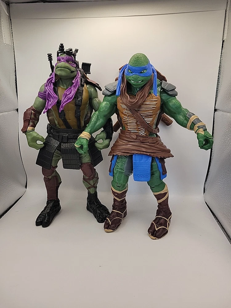 2 large 11" figures no weapons Dive into the action-packed world of the Teenage Mutant Ninja Turtles with this 11" Leonardo and Donatello action figure set from Playmates Toys. Crafted with durable plastic, these figures are inspired by the animated adventures from the popular TV show and capture the essence of the beloved characters in impressive detail. Released in 2014, these figures are part of the TMNT series and stand tall with their iconic weapons, ready to recreate epic battles or display with pride. Whether you're a long-time fan or new to the franchise, these original Playmates TMNT figures are a must-have to celebrate the enduring legacy of the Teenage Mutant Ninja Turtles.