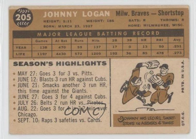 2014 Topps - 75th Anniversary Buybacks - Large Buyback Stamp #1960-205 Johnny Logan - Baseball Card - Featuring the Milwaukee Braves - Featuring Johnny Logan Search for more: 2014 Topps Search for more: 2014 Topps - 75th Anniversary Buybacks - Large Buyback Stamp View all of our Listings Auctions Buy It Now About Us Located in the beautiful Pacific Northwest, COMC (Check Out My Cards) is the world's largest consignment service for trading card singles. More than 10,000 people have used our consignment service to list over 50 million trading cards. Find out how we can help you consign your items on eBay by contacting us through eBay messaging. COMC -- "The Safe & Easy Way to Buy & Sell" Representative Image - Select Specific Item above to see image of actual item Representative Image - Select Specific Item above to see image of actual item Raw Condition for Modern Cards Unless otherwise noted, raw modern cards are listed in Near Mint-Mint condition or better. A NM-MT card appears to be Mint at first glance, but upon closer inspection, may exhibit some of the following: minor print defects (e.g. roller marks, print line, dimple), minor scratches, slight edge wear, and slight corner wear. Centering is clearly visible in the images provided and does not factor into our condition assessment. Raw Condition for Vintage Cards Unless otherwise noted, raw vintage cards are listed in Excellent condition or better. An EX card may exhibit some of the following: minor rounding of corners, surface wear, print defects, light scratches, and slight edge wear/chipping. Centering is clearly visible in the images provided and does not factor into our condition assessment. Domestic Shipping Combined shipping for multiple items is available. To receive combined shipping, please ensure all desired items are in your eBay shopping cart before proceeding to checkout. eBay limits orders to 40 items per order. We automatically combine multiple orders placed on the same day. If you place multiple orders on the same day, please contact us to request a refund of applicable shipping costs. Signature confirmation may be required on invoices over $400. All cards are protected and shipped securely. International Shipping COMC offers eBay's International Shipping (EIS) for international orders under $2,500* (see country exceptions below). All duties and import fees are paid at checkout; in the rare event that there are additional import fees upon delivery, these are borne by the buyer. EIS packages route through a shipping hub in Erlanger, KY before shipping to their final destination. Please note that EIS does not allow for combined shipments. The shipping rates are determined by eBay and cannot be adjusted. *Maximum sale price exceptions: Colombia, Kuwait ($2,000); Taiwan ($1,539); Chile, Costa Rica, Guatemala, Honduras, Trinidad and Tobago ($1,000); Antigua and Barbuda, Aruba, Belize, Dominica, Grenada, Philippines, Saint Kitts and Nevis, Saint Lucia, Montserrat, Turks and Caicos Islands ($500); Dominican Republic, El Salvador ($200). Please request a shipping quote through eBay messaging for orders that exceed the maximum sale price supported by eBay's International Shipping. You will be responsible for all duties and import fees for international orders shipped outside the EIS. All cards are protected and shipped securely. Payment COMC does not accept offers on our cards through our eBay storefront. COMC utilizes eBay’s managed payments system. If you are experiencing difficulties making a payment, please contact eBay for assistance. Return Policy Returns are only accepted on the rare occasion the item is not as described. If you are making a return, please initiate the return process through eBay so a mailing label can be provided for you. Prior to listing, our expert team carefully assessed this item to represent it accurately. Please review the description and high-definition images prior to purchasing to ensure this item meets your satisfaction. We welcome you to contact us if you have further questions about this item. Trust and Integrity COMC carefully assesses each item consigned to us to prevent fraudulent items from entering the marketplace. If you believe an item offered on COMC may be fraudulent, please contact us with details so we can investigate the issue. Items we determine are outside our supported items policy may be removed. Last Modified: 1/28/2025 5:00:25 AM PDT