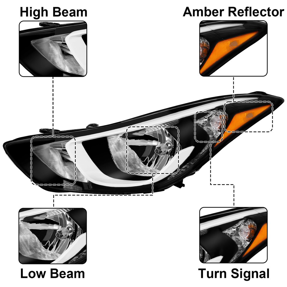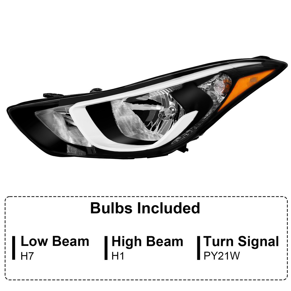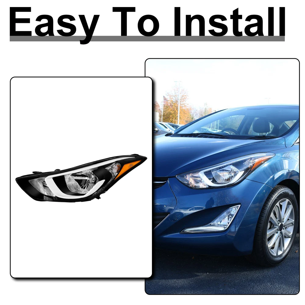 Headlight For Hyundai Elantra 2014 2015 2016 w/bulbs Factory Left Driver Side Features: 1.Direct replacement for stock assemblies 2.Comes in pairs with driver & passenger sides (left) 3.DOT and SAE compliant with quality meeting or exceeding OEM units 4.All Headlight Lenses come with anti-yellowing/ageing coating 5.3-Months limited warranty 6.Increase your visibility during heavy rain, snow, dense fog and night time driving. Product Description: High Beam Bulb:(Bulbs are included) Low Beam Bulb: (Bulbs are included) Turn Signal Light: (Bulbs are included) Housing Material: Plastic Lens Material: Plastic Amber Reflector Compatible with: 2014-2016 Hyundai Elantra Package includes: One headlight Driver Side(include bulbs) Payment Shiping Policy Returns Policy Feedback Contact us Payment We accept PayPal, Google Pay, Credit Cards, and Debit Cards. Shiping Policy All Orders Will Ship Within Two Business Days.Except PR,HI,AK,GU and PO Box addresses. No local pick up All Packages Will Be Inspect Before Shipping, We Will Provide All Packing Material Needed For Your Package For Shipping Such As Boxes, Cushioning And Tape To Improve Shipping Quality. Very Important: Double check shipping address. We are not responsible for incorrect or undeliverable addresses. Returns Policy 60 Days returns satisfaction guarantee. All of Our Items Are 100% Brand New. If The Item Shows Up Defective or Broken, Please Contact Us Within 3 Business Days By Using "Ask A Question" Link Located At The Bottom of Our Listing. Your Questions/Concerns Will Be Responded Within 12 Hours Monday To Friday. Buyers May Contact us On The Weekends or Pubic Holidays And We Will Respond On The Next Working Day. We Will Offer Replacements, Exchange or Full Refund. 100% Satisfaction Guaranteed. We Will File Damage Or Lost Claim For Our Buyers Feedback We will leave a positive feeback immediately after payment is received. We appreciate a positive feedback as much as you do. If you have any issue with order,pls. contact us before leaving a feedback. We will glad to resolve your issue.Your satisfaction is our priority. Contact us If you have any concerns, Pls. feel free to contact us at any time.