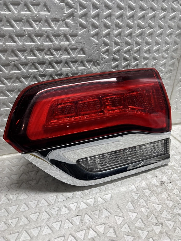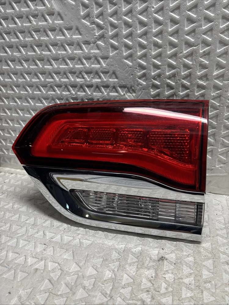 The product is a genuine OEM right pass inner lid tail light assembly designed for the 2014-2020 Jeep Grand Cherokee. It features a red LED light with a black housing and a red lens color. The tail light assembly is DOT-certified, SAE-certified, and OE-certified, ensuring quality and compliance with safety standards. With a wattage of 16W and a voltage of 13.5, this bolt-on assembly is manufactured in Mexico and is suitable for the inner placement on the vehicle. Ideal for replacing damaged or worn-out tail lights, this product is a reliable and authentic part from the Jeep brand.
