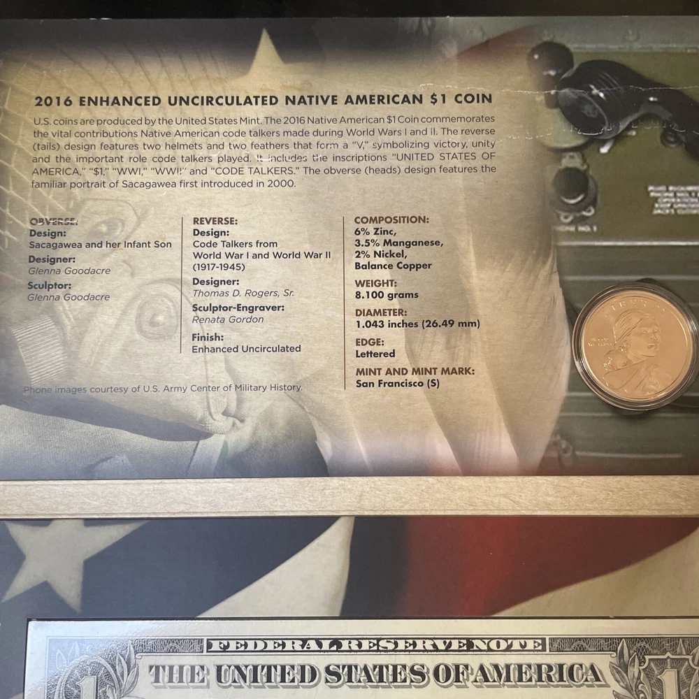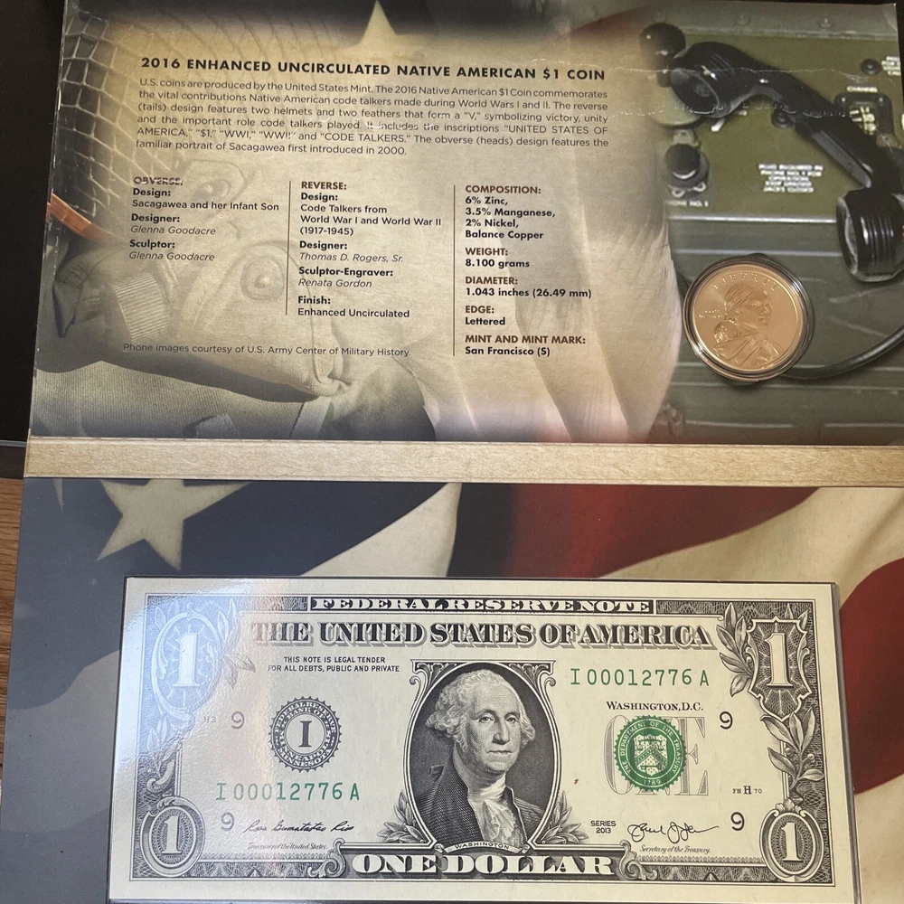 2015 And 2016 American $1 Coin And Currency Set,; Code Talkers, Iron Workers