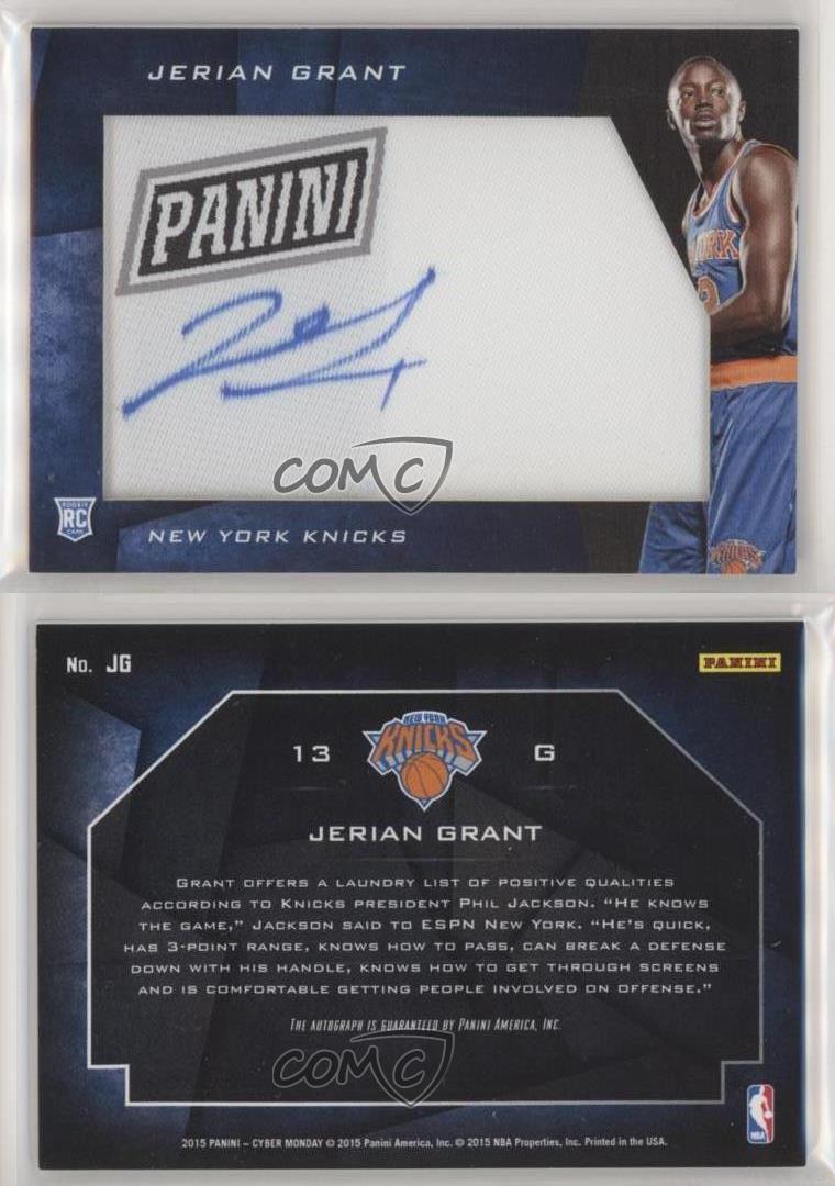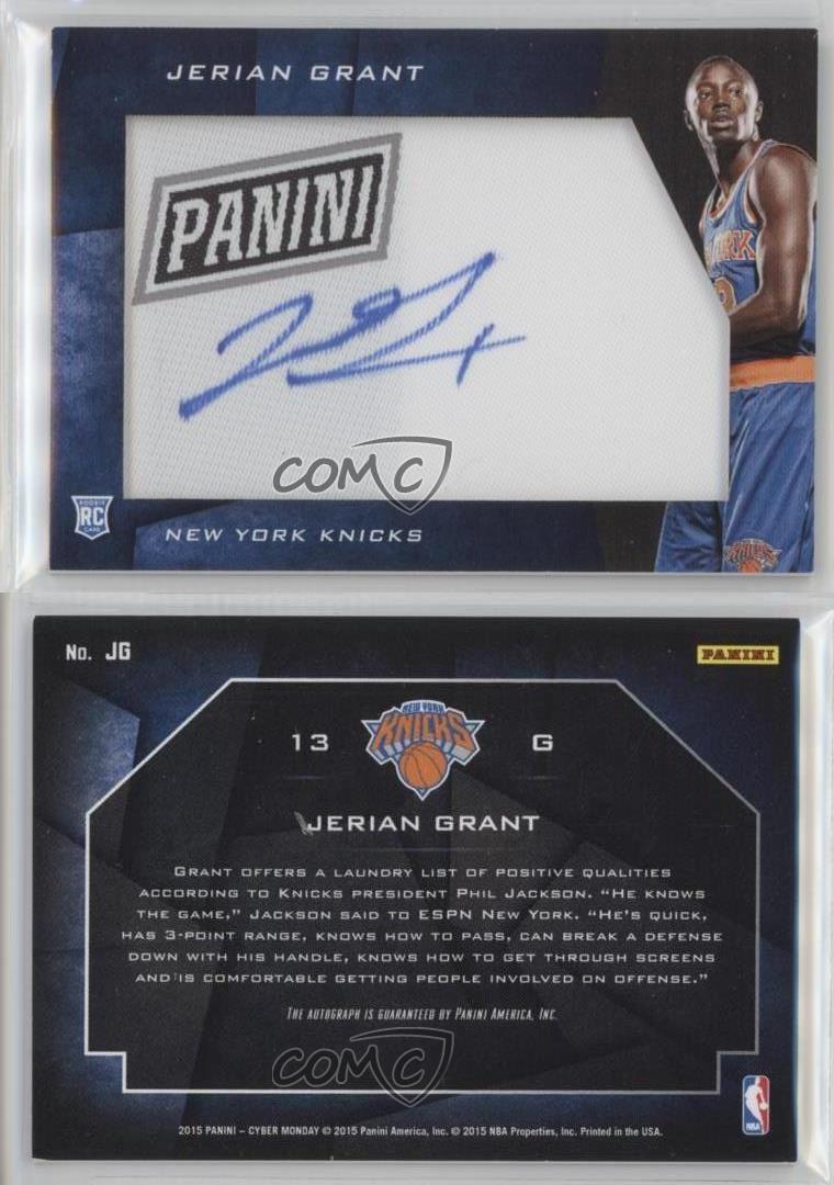 2015 Panini Cyber Monday - Autographed Manufactured Patch - Panini Logo #JG Jerian Grant - Rookie - MultiSport Card - Featuring the New York Knicks - Featuring Jerian Grant Search for more: 2015 Panini Cyber Monday Search for more: 2015 Panini Cyber Monday - Autographed Manufactured Patch - Panini Logo View all of our Listings Auctions Buy It Now About Us Located in the beautiful Pacific Northwest, COMC (Check Out My Cards) is the world's largest consignment service for trading card singles. More than 10,000 people have used our consignment service to list over 50 million trading cards. Find out how we can help you consign your items on eBay by contacting us through eBay messaging. COMC -- "The Safe & Easy Way to Buy & Sell" Representative Image - Select Specific Item above to see image of actual item Representative Image - Select Specific Item above to see image of actual item Raw Condition for Modern Cards Unless otherwise noted, raw modern cards are listed in Near Mint-Mint condition or better. A NM-MT card appears to be Mint at first glance, but upon closer inspection, may exhibit some of the following: minor print defects (e.g. roller marks, print line, dimple), minor scratches, slight edge wear, and slight corner wear. Centering is clearly visible in the images provided and does not factor into our condition assessment. Raw Condition for Vintage Cards Unless otherwise noted, raw vintage cards are listed in Excellent condition or better. An EX card may exhibit some of the following: minor rounding of corners, surface wear, print defects, light scratches, and slight edge wear/chipping. Centering is clearly visible in the images provided and does not factor into our condition assessment. Domestic Shipping Combined shipping for multiple items is available. To receive combined shipping, please ensure all desired items are in your eBay shopping cart before proceeding to checkout. eBay limits orders to 40 items per order. We automatically combine multiple orders placed on the same day. If you place multiple orders on the same day, please contact us to request a refund of applicable shipping costs. Signature confirmation may be required on invoices over $400. All cards are protected and shipped securely. International Shipping COMC offers eBay's International Shipping (EIS) for international orders under $2,500* (see country exceptions below). All duties and import fees are paid at checkout; in the rare event that there are additional import fees upon delivery, these are borne by the buyer. EIS packages route through a shipping hub in Erlanger, KY before shipping to their final destination. Please note that EIS does not allow for combined shipments. The shipping rates are determined by eBay and cannot be adjusted. *Maximum sale price exceptions: Colombia, Kuwait ($2,000); Taiwan ($1,539); Chile, Costa Rica, Guatemala, Honduras, Trinidad and Tobago ($1,000); Antigua and Barbuda, Aruba, Belize, Dominica, Grenada, Philippines, Saint Kitts and Nevis, Saint Lucia, Montserrat, Turks and Caicos Islands ($500); Dominican Republic, El Salvador ($200). Please request a shipping quote through eBay messaging for orders that exceed the maximum sale price supported by eBay's International Shipping. You will be responsible for all duties and import fees for international orders shipped outside the EIS. All cards are protected and shipped securely. Payment COMC does not accept offers on our cards through our eBay storefront. COMC utilizes eBay’s managed payments system. If you are experiencing difficulties making a payment, please contact eBay for assistance. Return Policy Returns are only accepted on the rare occasion the item is not as described. If you are making a return, please initiate the return process through eBay so a mailing label can be provided for you. Prior to listing, our expert team carefully assessed this item to represent it accurately. Please review the description and high-definition images prior to purchasing to ensure this item meets your satisfaction. We welcome you to contact us if you have further questions about this item. Trust and Integrity COMC carefully assesses each item consigned to us to prevent fraudulent items from entering the marketplace. If you believe an item offered on COMC may be fraudulent, please contact us with details so we can investigate the issue. Items we determine are outside our supported items policy may be removed. Last Modified: 1/30/2025 11:52:23 AM PDT