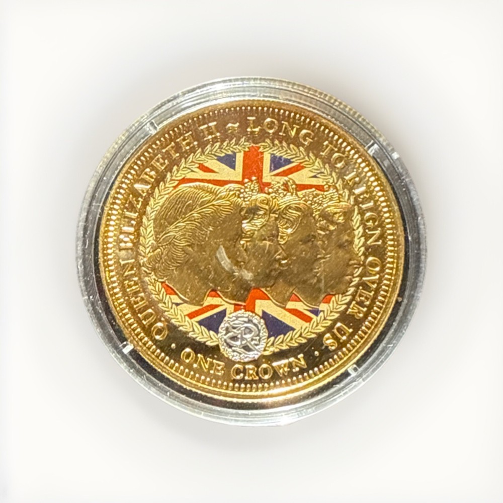 2015 PROOF TDC Long to Reign One 1 Crown Coin is an uncirculated coin minted in 2015 with a fineness of 0.999. It has been certified by NGC, making it a high-quality and collectible piece for any coin enthusiast. This coin pays tribute to the long-reigning monarch, featuring a design that reflects the tradition and history of the British monarchy.