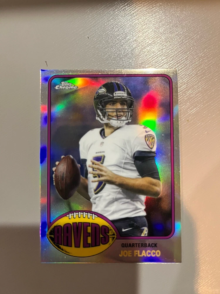 Really nice rare retro refractor of Joe Flacco of the Baltimore Ravens. Great looking card would be a great addition to any collection!