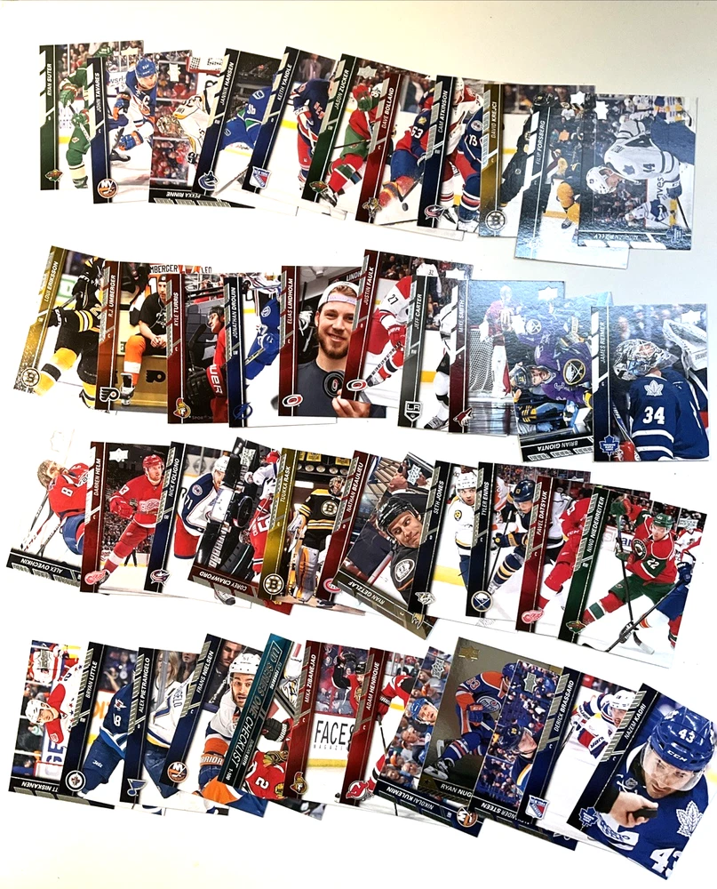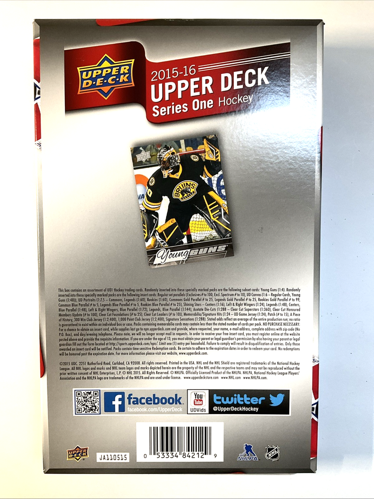 1. Brand: NHL 2. Item Description: USED 2015-16 Upper Deck Series 1 Hockey Hobby Box 177/192 Cards 3. Condition: Hi! This is an OPEN BOX ITEM and is not factory sealed meaning its been opened AND cards are missing. There are 177 in total out of 192 meaning there's 15 cards missing. I cant guarantee there's any young guns or specific hits still inside. I'm selling this as a partial lot of cards rather then a complete set, unsearched hobby box. Please look at the photos to see exactly what's included. Feel free to ask any questions. 4. Color: 5. Included Items: A. Included: comes with box and most of the cards B. Not Included: 6. Suggested Retail Price: $