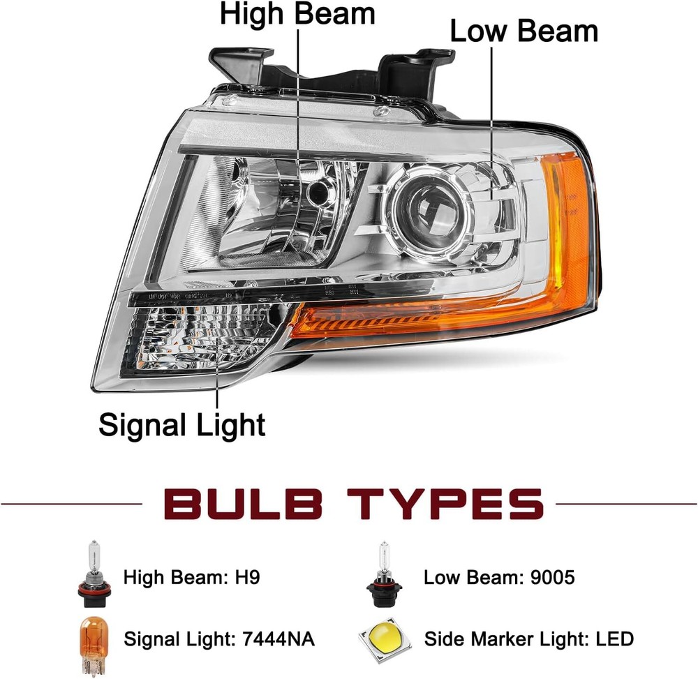 About this item 【VEHICLE COMPATIBILITY】Headlight assembly is compatible with 2015-2017 Expedition. Bulbs are not included. High beam bulb type: H9; low beam bulb type: 9005; Signal light bulb type: 7444NA; Side marker light bulb type: LED. OEM Part Number: FL1Z13008F . ABPA Partslink Number: FO2502334 . 【PREMIUM HOUSING MATERIALS】This headlamp is sturdy constructed with a fully sealed heavy duty housing made of high quality OEM grade polycarbonate plastic, waterproof up to IP65, ensuring excellent weather and impact resistance. Well built to provide bright lighting. New lenses and reflectors provide better lighting and ensure a pleasant and comfortable driving experience. 【SAFETY & DURABILITY】Made of SAE & DOT certified materials that meet or exceed OEM requirements. Micro-prism reflectors and chrome finishes within the headlights increase the light's reflectivity, making it easier for oncoming vehicles to notice you at night. Give you a safer comfortable driving experience. Stable characteristics and high reliability. 【EASY INSTALLATION】Plug-n-play installation. Direct Bolt-On OE Fitment or Replacement for the stock unit. Requires no modification or drilling. Note: installation instruction is not included, professional installation would be highly recommended. About US We will reply the message asap once we received your message, Usually reply within 24h.Expect Public Holiday. If it has some problem with the item, pls don't open the return, and we will solve the problem for you asap Payment Method We Suggest that Pay via Paypal Pleaes Pay for the item within 3 days after the bidding or purchase. E-Check Payments requires 2-4 business days to clear before we can process the order. Unpaid Item will lead to Ebay Unpaid Strike Case. Shipping Policy 1.How much is shipping and handling (S&H)? The shipping and handling costs will be clearly marked on the auction item page. 2.Please make sure the Ship-To address you type during checkout is correct. We are not responsible for any wrong or undeliverable addresses. 3.Local pick up is not available. 4.Items are generally shipped out the next business day after your payment has been cleared (Sat. & Sun. excluded.). 5.An e-mail will be sent to your eBay e-mail address upon item is shipped out. If you do not receive this e-mail in 48 Business Hours, please contact us to check the status of your transaction. . 6.International Buyers - Please Note: Import duties, taxes, and charges are not included in the item price or shipping cost. These charges are the buyer's responsibility. Please check with your country's customs office to determine what these additional costs will be prior to bidding or buying. Customs fees are normally charged by the shipping company or collected when you pick the item up. These fees are not additional shipping charges. Returm&Warranty 1.Our items come with one or two-year warranty. 2.Our warranty does not extended to any products that are physically damaged or that are not under normal operating conditions as a result of misuse or improper installation on the buyer/user's part. 3.This product comes with 30-Day Money Back Guarantee. 4.We stand behind every product we sell. If you're not pleased with your purchase, we'll be happy to make an exchange or refund. 5.For all returned products, please contact us for the returning address. Respond 1.ALL replies will be sent to your email, if you don't get response within 1-2 business days, pls check your My Messages in case your email provider has an overly-aggressive spam filterblocking eBay's emails. Please email us AGAIN. 2.Email is the priority of our customer service. Customer Service 1.Your better comments will be an encouragement for us to offer the better quality and the better service in future. 2.If you are not satisfied with them, please contact us first via Ask a Question or via Contact Seller. Your messages will be answered within 1-2 business day. We shall try our best to solve your problem to your satisfaction. On 22-Mar-22 at 10:25:26 GMT, seller added the following information: