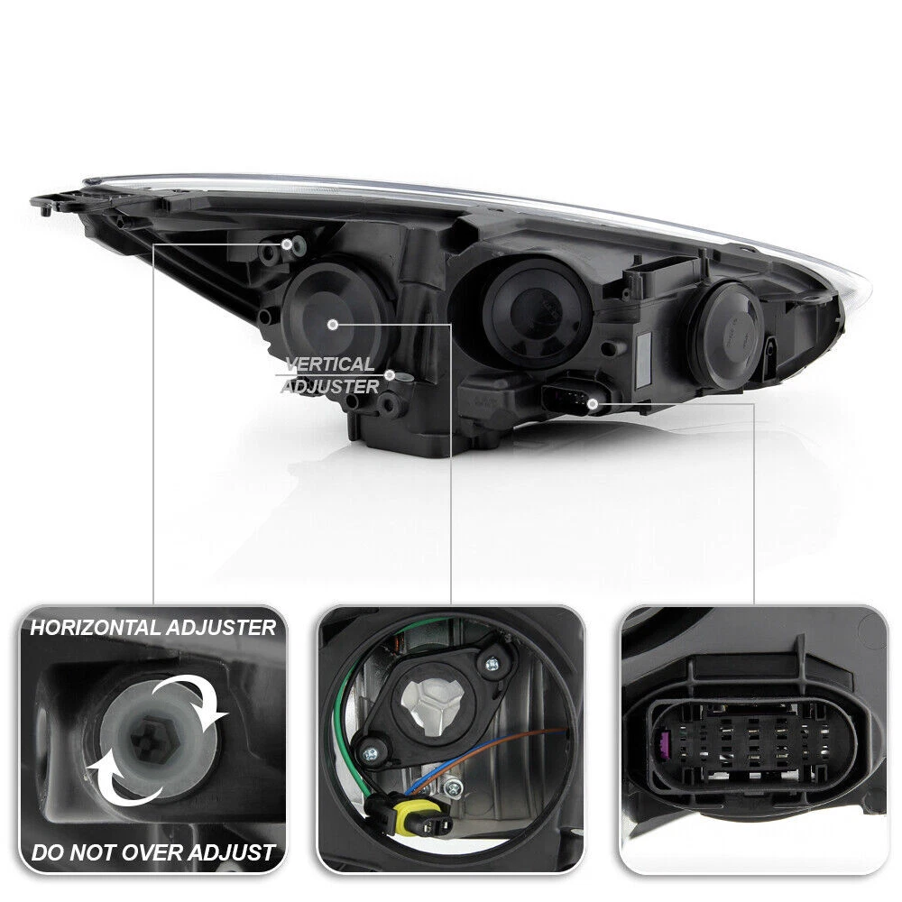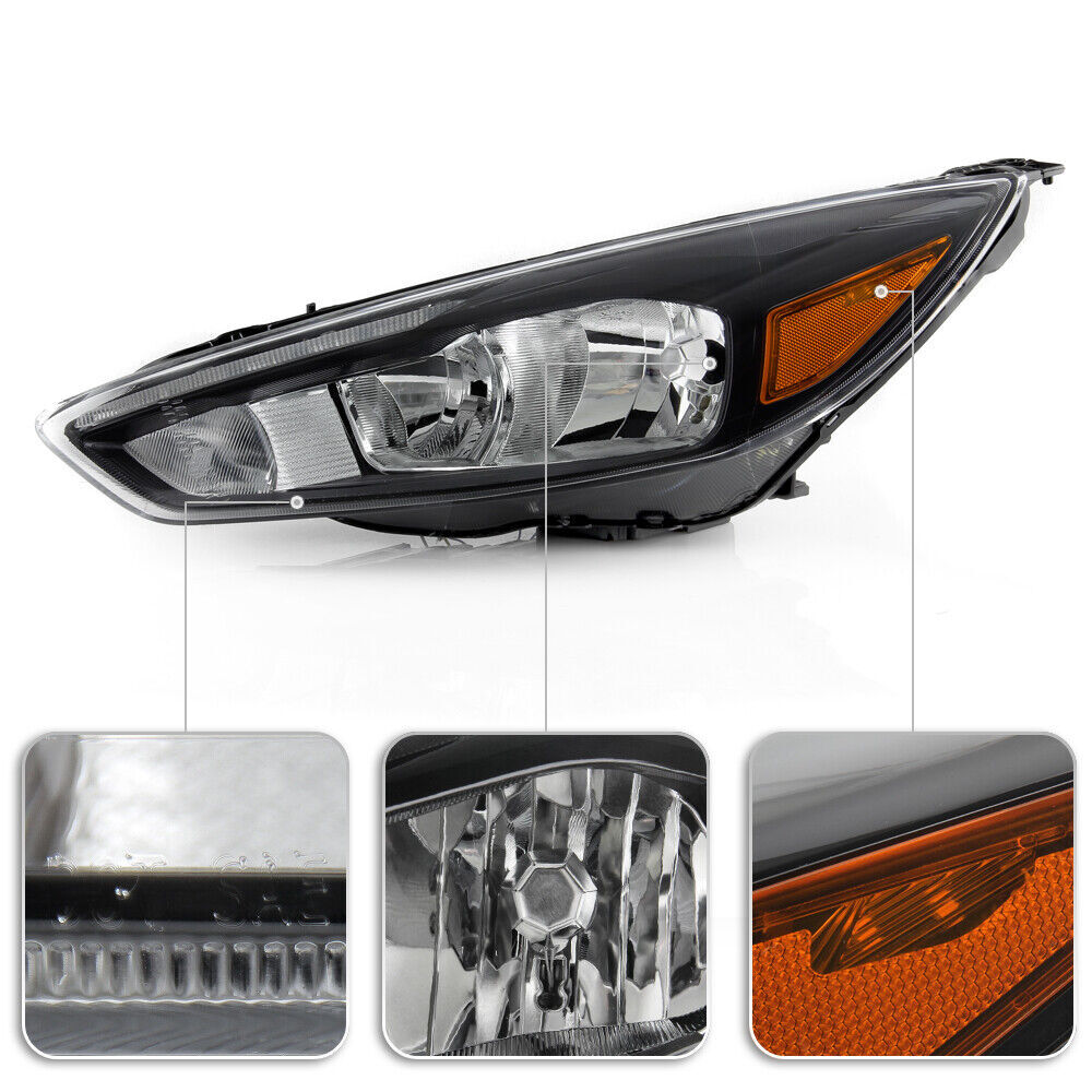 Document Compatible with For 2015-2018 Ford Focus ^Only Fits Halogen Headlight With LED DRL Models ^Not Fit Electric & RS Models Part Number ABPA PARTSLINK GM2502235, GM2503235 OEM 15287023, 15287024, 15851372, 15851373, 15207723, 15207724 HOLLANDER 114-00780L, 114-00779R TYC 20649300, 20649400 DORMAN 1591106, 1591107 DEPO 3351130LAS, 3351130RAS Features 1 Product Description Easy Installation Plug-n-Play Operation, Direct Bolt-On OE Fitment or Replacement for the Stock Unit. Product Durability: Advanced UV coating is applied on headlamp lens, to protect the lens from scratches and cracks as well as from UV rays. The comprehensive testing processes, ensure the resistance of leakage, corrosion, and rust, for longer service life. Comparable to OEM in breathability and structural integrity with features like a Gore-tex fabric membrane to allow moisture to escape but also repel liquid. Meets or exceeds applicable DOT/SAE standards and complies with the U.S. Motor Vehicle Safety Standard, FMVSS-108. DO HEADLIGHTS DIM OVER TIME you’ll discover that the haze is on the outside of the headlight cover, and is caused by environmental factors. Ultraviolet light from the sun is the leading culprit, followed by road salt and grime that interact with the plastic and cause it to lose its transparency. Headlights that fade over time are impossible to avoid, as it’s a part of how the components wear out, but it’s essential that you do something about it. By replacing the bulbs, installing new headlight lenses or getting new bulbs, you can ensure you’ll have a clear view of the road ahead. HOW DO YOU REPLACE A HEADLIGHT ASSEMBLY? Some headlights are part of an entire assembly, so you can’t simply change the bulb. If you need to replace the entire headlight assembly, it shouldn’t take long with most car models. If the job is straightforward, you are looking at less than an hour. However, your model might require that the entire front-bumper fascia be removed—or at least loosened—to reach the headlight assembly. For example, replacing the headlight on a Toyota Camry, Chevy Malibu, or Ford Fusion might be more challenging. It requires extra time, so give yourself at least two hours if you aren’t experienced. Before you start, we recommend two things: Buy a repair manual for your vehicle. Watch YouTube videos specific to your model and year. These will help you understand the specific steps required for your model. Here are essential pointers for swapping headlight assemblies. Only work on the headlight assembly while the car is off, and the keys are out of the ignition. Remove all bolted- or clipped-on connections, including the wiring harness connected in the back. Place any small pieces in a safe location for reassembly. Once you connect the new headlight assembly, try it before putting everything back together. Use the low and high beams to ensure everything is working. Remember also to check the aim of the headlights using our guide to adjusting headlights. Moisture in Headlights What Can You Do About It? Usually, when you turn the headlights on, the heat causes the moisture to evaporate. It can also evaporate on its own over the course of the day, as the sun warms things up enough to do the same job. Driving the car can also help, as it allows air to pass through the vents in the light housing and clear out the moisture, much like running the defroster in your car’s cabin clears the windshield. Moisture in Headlights Doesn’t Have to Mean It’s Time for Replacement Ventilation = Condensation Since most headlights generate heat, they need to be ventilated, which means that they feature small vents that can suck in moisture when the car is turned off. If the outer lens cools more quickly than the air inside the headlight unit, it can cause condensation. This explains why you most often encounter condensation in the morning after your car has been parked overnight. Moisture in headlights can be a frustrating problem: Fogginess affect the amount of light the unit projects. It can also cause corrosion over time inside the assembly. Is It Time for a Replacement? If you’re seeing more than a normal amount of moisture in your headlights, or if you’ve noticed more water inside the housing after a rain storm, you could be dealing with a cracked headlight or a problem with the rubber gaskets that seal it to the body. Most of the time, gaskets can be replaced individually, but if the headlight housing is cracked, then you’ll most likely have to replace the entire unit. Prevent Further Moisture: There’s a number of products that can help you recreate a firm seal. inspect the seal for any damage or debris. If necessary, run a bead of silicone sealant around the factory seal area to ensure no moisture can enter the assembly replace the seal if your housing uses a replaceable seal. You’ll also want to check the O-rings that protect the electrical connectors, bulb, vent and other components of your headlight assembly. On Sep 18, 2024 at 20:49:52 PDT, seller added the following information: On May 26, 2025 at 19:37:40 PDT, seller added the following information: