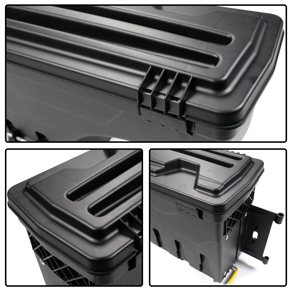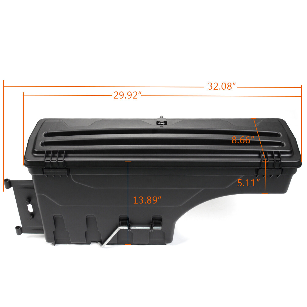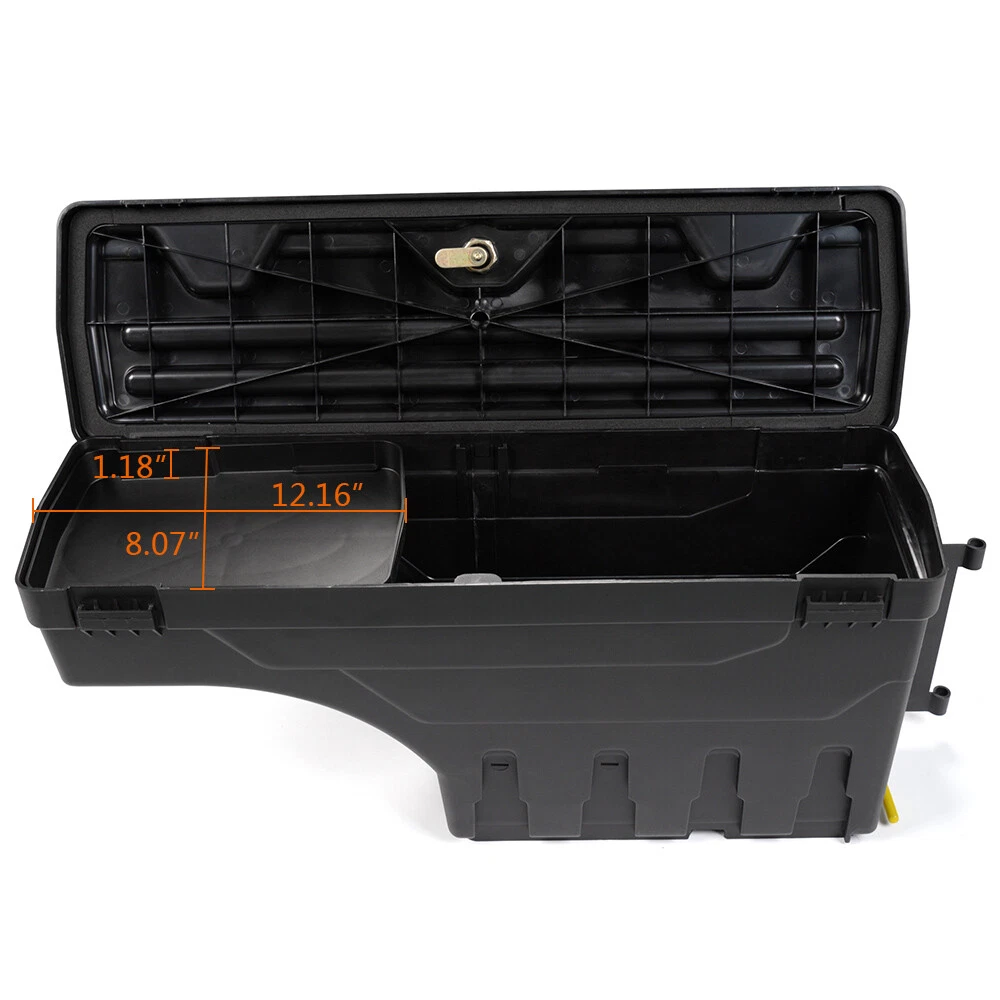 Specification: 75Lbs Capacity Features: Locking Finish: Matte Bed Length: Fit 2015-2019 FORD F150 Emails Reply: Within 1 Business Day During Business Hours Style: Passenger Side Wheel Well Swing Tool Box Case Material: Heavy Duty ABS / Steel 30 Day Money Back Guarantee: Yes Manufacturer Warranty: 1 Year Fitment Type: Performance/Custom Type: Truck Bed Storage Box Toolbox Easy & Hassle Free Returns: Yes Return Shipping Charges: Free For Lower 48 States Mounting Hardware Included: Yes Placement on Vehicle: Rear, Right Color: Black Manufacturer Part Number: E-02ISC1208RBK Brand: grandorange Number of Rear Wheels: 2 Business Hours: Sunday-Friday 5pm-2am PST