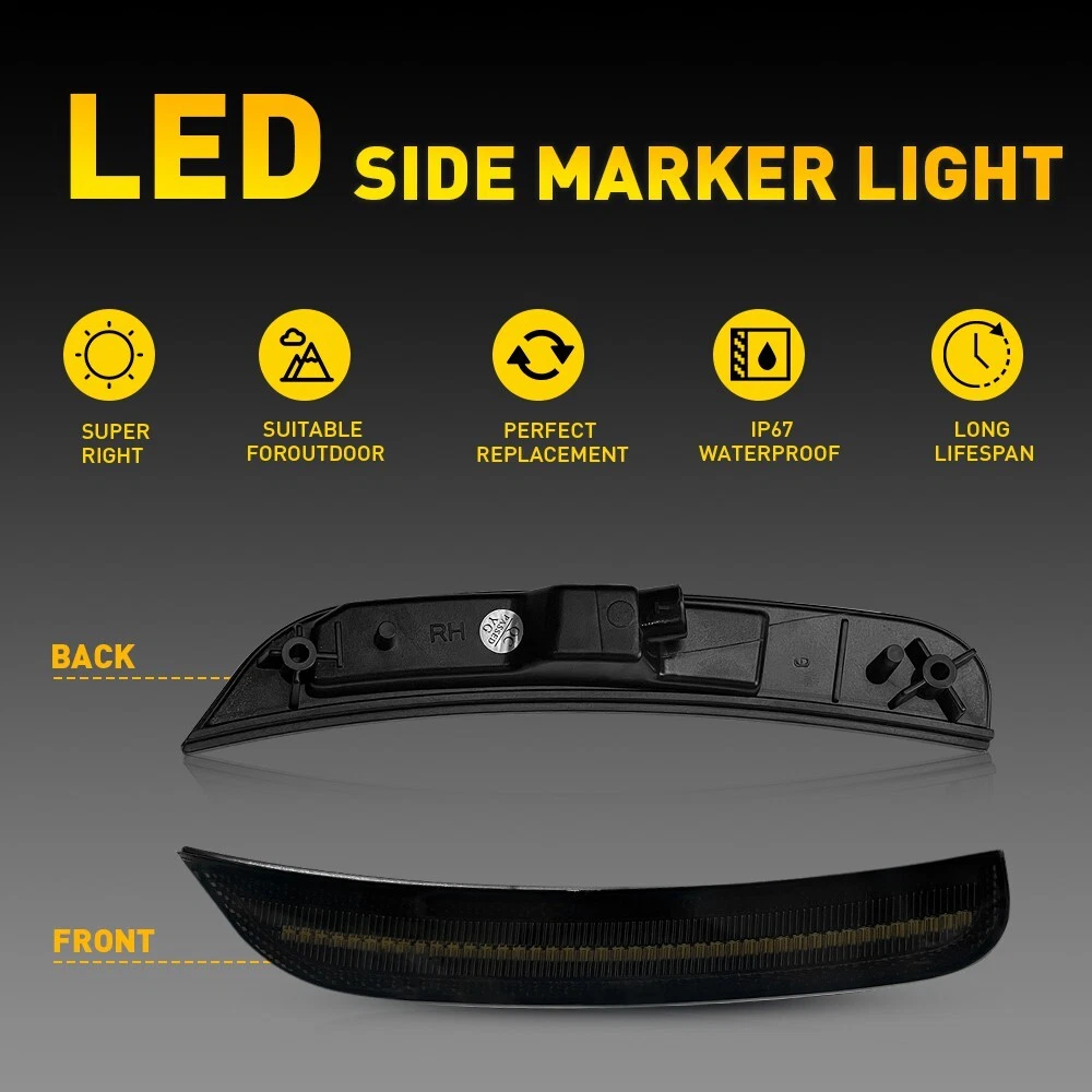 These smoked LED side markers add a sleek, modern look to the Chrysler 300 while providing bright, crisp lighting. The smoked lens gives it a clean, custom appearance, and the fit is perfect—no gaps or alignment issues. The LED strip delivers excellent visibility, and the IP67 waterproof rating ensures durability in any weather. Installation was straightforward, and the quality feels premium. Definitely upgrades the rear styling!