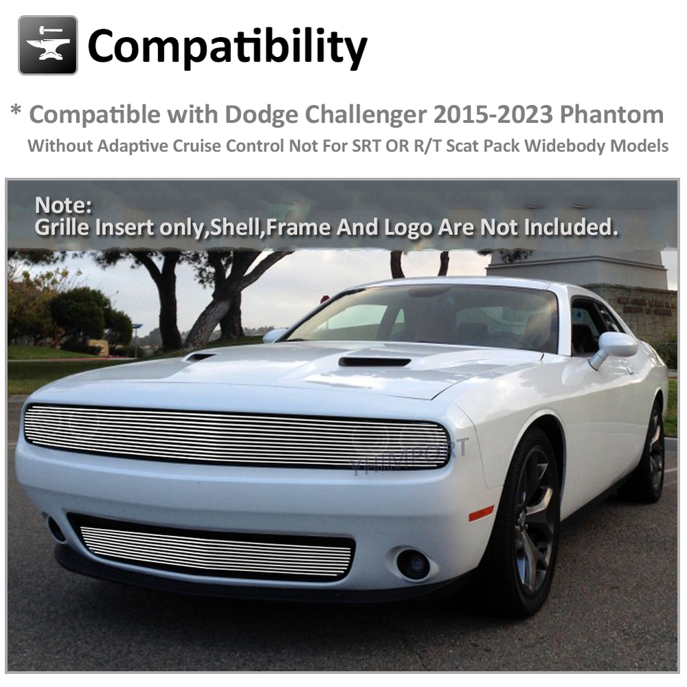 Store Categories Store Categories YH-Cadillac YH-Chevy YH-FORD YH-GMC YH-Chrysler YH-Dodge YH-NISSAN YH-TOYOTA YH-HONDA YH-MAZDA YH-Lincoln YH-Audi YH-Pontiac YH-Acura YH-Buick Billet Grill Stainless Mesh Grill Rivet Mesh Grill Punch Grill Other Fits 2015-2023 Dodge Challenger Phantom Chrome Upper Bumper Billet Grille Insert Product Description 【 Compatibility 】 * Compatible with Dodge Challenger 2015-2023 Phantom Without Adaptive Cruise Control Not For SRT OR R/T Scat Pack Widebody Models 【 US W arehouse 】 Shipping from US local warehouse , UPS or FedEx delivery, 2 -7 business days delivery. 【 A mazing Look 】 Polished grill g ives your car a nice easy custom look , stand out from all the rest! 【 Easy Install 】 Bolt Over/Overlay/Bolton (Drilling Not Required) , if you are not good at modifying cars, you can refer to the video on YouTube. 【 Best Gifts 】 F ront grill is the best present for Thanksgiving, Christmas, Birthday, Wedding anniversary,Valentine's Day. Returns Policy Shipping Policy Payment Policy Returns Policy l We accept return or exchange within 30 days after package delivered. l Products must be in the condition you received them and in the original box and/or packaging. l No refund will be made on damaged or missing products. l If we sent the wrong or defective item, we will cover all the cost for return/exchange. l If buyer placed the wrong order, we accept return with 20 % restocking fee applied, also you need pay for the return shipping cost. Shipping Policy l Most of our orders ship within 24 hours in business day l Please ensure your shipping address is correct before submit payment. We only ship to your shipping address after your payment. If the shipment got returned due to wrong address or refused by buyer, there will be 20 % restock fee. Payment Policy l We accept Paypal and Visa, MasterCard, Amex, Discover from PayPal. l You do not need a paypal account to make a payment. You can go to checkout, and choose "Paypal", then choose "No paypal account", you will be able to pay by credit card directly. Copyright © 2023 Dianxiaomi