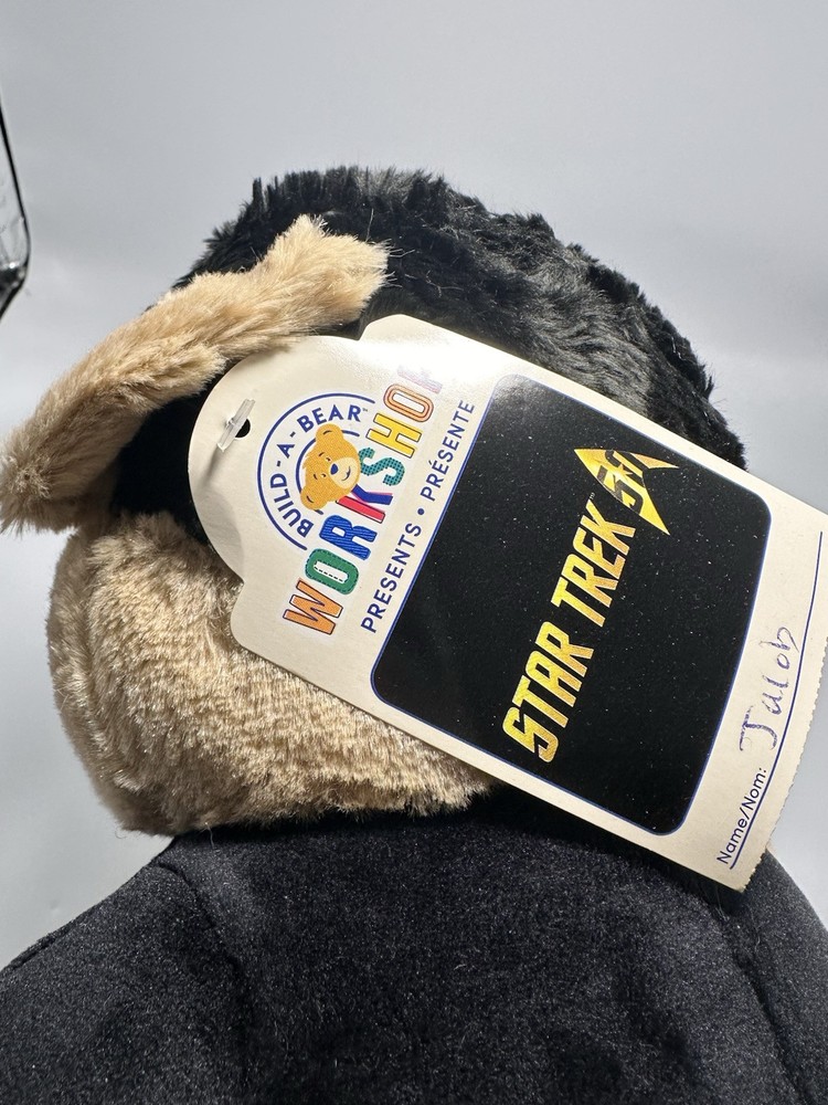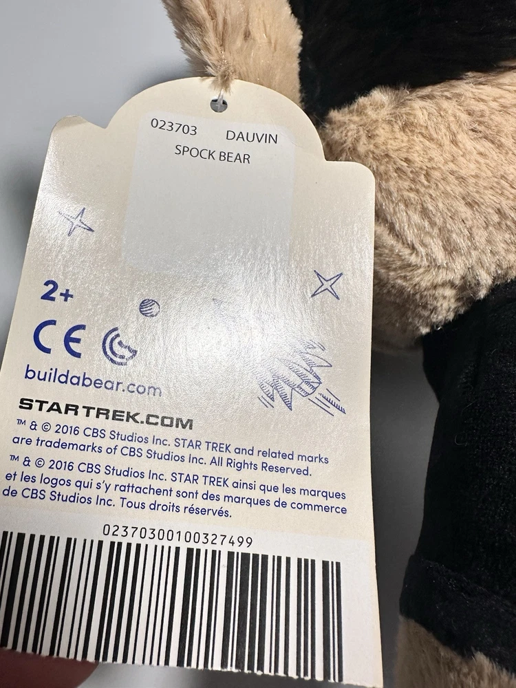 UPC:Does not applyAnimal:Star Trek Spock BearType:PlushYear:2016gtin13:Does not applyCharacter:SpockFranchise:Build-a-BearAnimal Species:BearYear Manufactured:2016Color:Black/TanBrand:Build-A-Bear WorkshopCollection:Limited Edition Star TrekMaterial:Plush