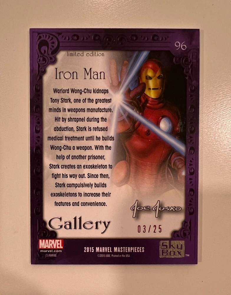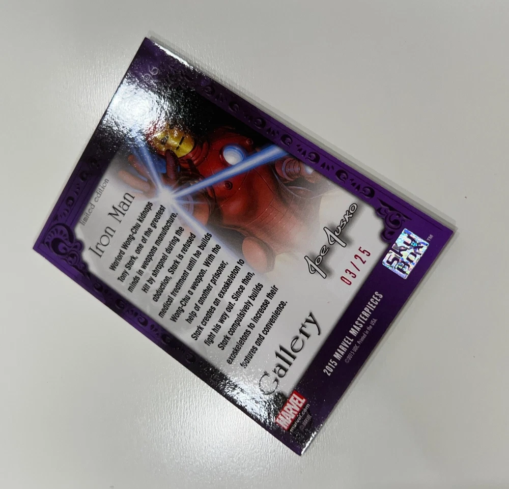 2016 MARVEL MASTERPIECES # 96 IRON MAN RED GALLERY CANVAS CARD. (RAINBOW SILVER) CASE HIT /25 CARD IS IN GREAT CONDITION (NM/M). ALL MY ITEMS COME FROM A SMOKE-FREE HOUSE. SHIPMENT WILL BE SENT IN 2 DAYS OF PAYMENT. I WILL SHIP THIS CARD IN THE GREATEST OF CARE. BUYERS OUTSIDE OF THE CONTINENTAL U.S. MAY HAVE TO PAY EXTRA FOR SHIPPING. I DO OFFER COMBINE SHIPPING RATES. SO PLEASE CHECK OUT MY OTHER ITEMS . FEEL FREE TO MESSAGE ME WITH ANY QUESTIONS. THANKS FOR LOOKING AND GOOD LUCK.