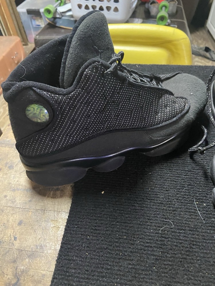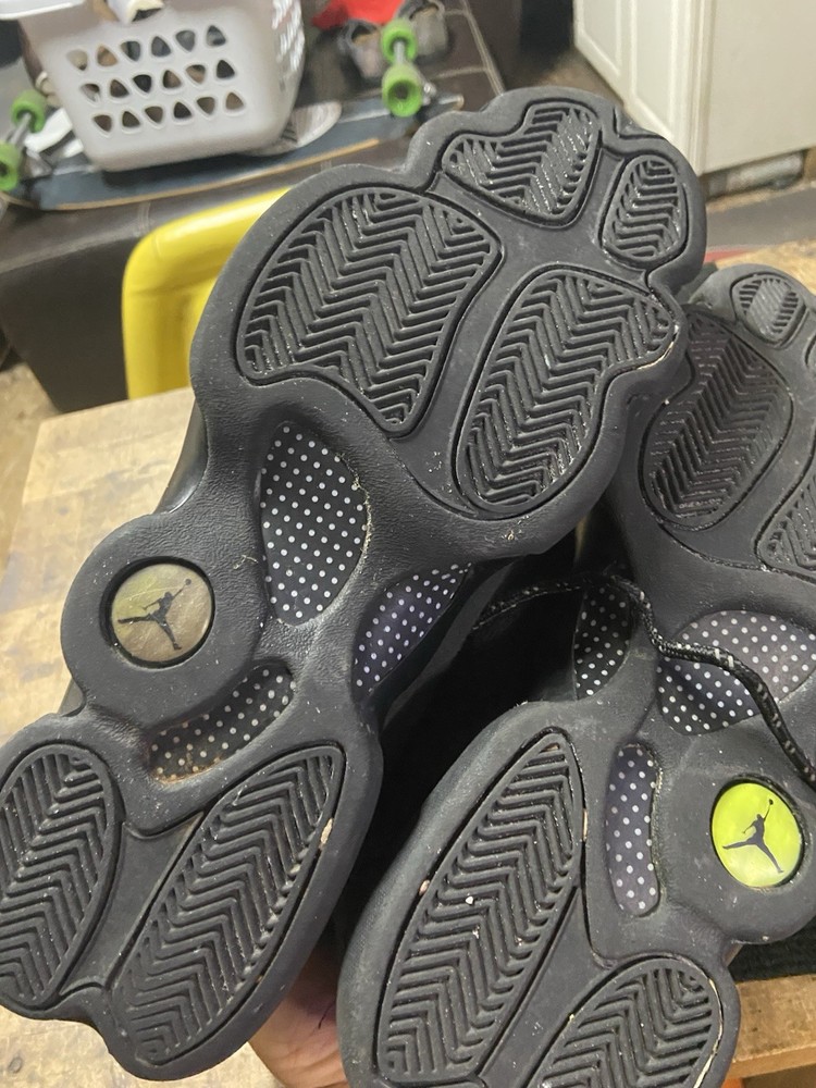 The 2016 Nike Air Jordan 13 Retro Black Basketball Shoes in size 10 are a stylish and comfortable option for boys who enjoy basketball and casual wear. With a round toe shape, lace-up closure, and leather upper material, these sneakers provide a secure fit and durability. The black colorway with retro theme, along with features like cushioning, comfort, and breathability make them a versatile choice for active kids. Whether on the basketball court or just hanging out, these Air Jordan 13s are sure to make a statement.