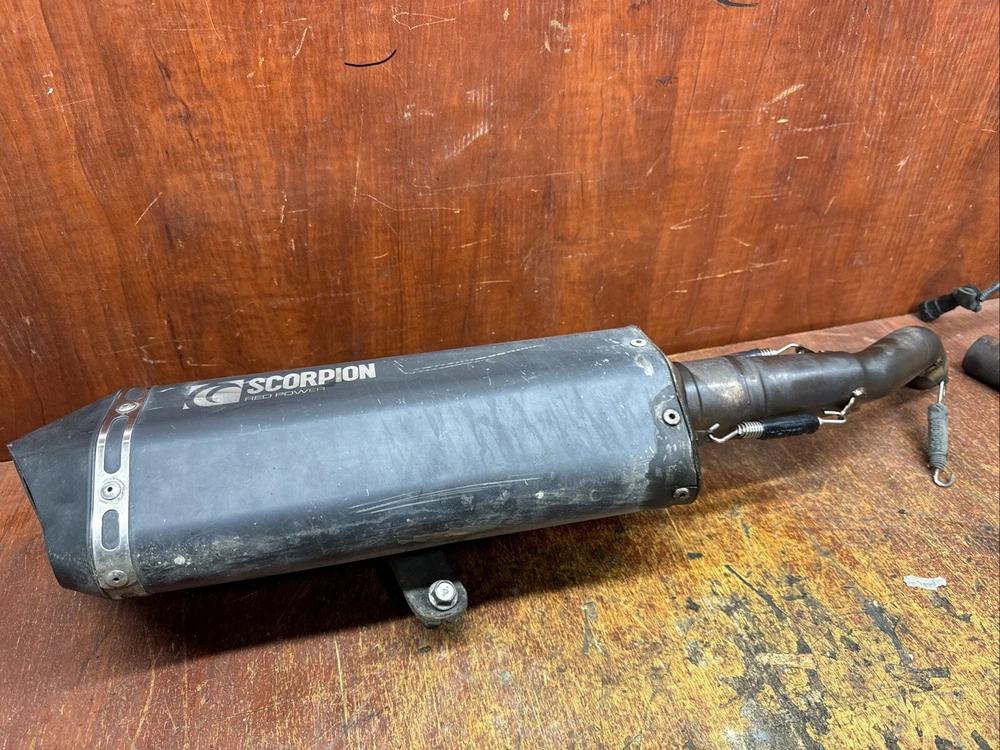2016 Piaggio Vespa GTS 300 Scorpion exhaust can as per pics. Few marks, scratches and small cracks, manifold damaged and will need welding, see pics. Selling as for spares or repairs. No returns. Removed from 2016 scooter that has done 12k miles. Thanks 82. PLEASE MAKE SURE YOU’RE BUYING THE RIGHT PART IF BOUGHT BY MISTAKE OR CHANGED YOUR MIND OR SOME OTHER REASON YOU WILL WANT TO RETURN IT YOU WILL HAVE TO PAY 20% RE-LISTING CHARGE.