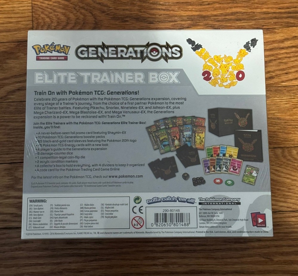 Will ship with etb case The product is a 2016 Pokemon Generations Elite Trainer Box (ETB) that is factory sealed, containing cards from the Generations set. The box includes a case and is manufactured by Pokemon. This collectible card game item is perfect for fans of Pokemon looking to add rare and exciting cards to their collection.