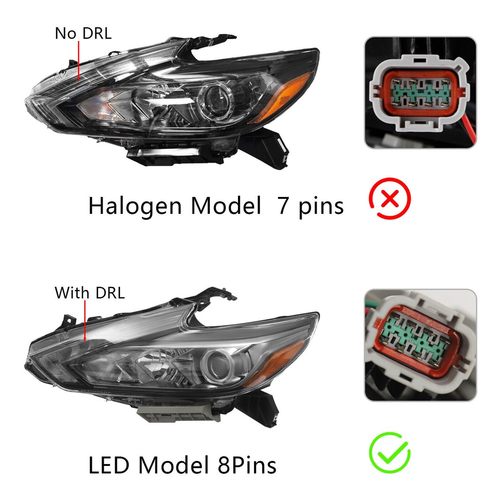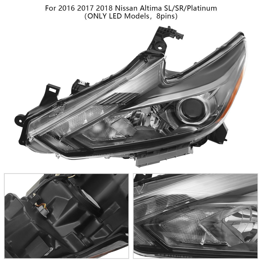 For 2016-2018 Nissan Altima Left Headlight LED Driver Side Headlamp w/DRL 8 PINS LED Headlight Headlamp For 2016 2017 2018 Nissan Altima (ONLY LED Models, 8 Pins) Driver Side LED Headlight, Left Driver Side Headlight Specifications Manufacturer Part Number: 26060-9HS3B Interchange Part Number: 26060-9HS3B OEM Part Number: 26060-9HS3B Applicable Models: For 2016 2017 2018 Nissan Altima Condition: New Lens Color: Clear Housing Color: Black Material: PC+PP Process: Injection Molding Type: Headlight Light Source Type: LED+ Halogen Low Beam Light: Yes (Bulb Not Included) High Beam Light: Yes (Bulb Not Included) Turn Signal Light: Yes (Bulb Not Included) Side Marker Light: Yes (Bulb Not Included) LED Daytime Running Light: Yes Installation Position: Front, Left Way of Use: Direct Replacement Assembly Method: Closed Voltage: 12V Gross Weight: 4.5kg/9.9lbs Net Weight: 4.28kg/9.44lbs Package Size: 72*36*23cm/28.35*14.17*9.06inch Key Features Good Compatibility: This product is a customized product, specially customized for the 2016 2017 2018 Nissan Altima, so it can be compatible with the adapted models. Safe Driving: The bright halogen light source can accurately transmit information when driving at night, greatly reducing the risk of collisions and providing a security guarantee for you and your family. Build to Last: This product is made of high-class PC+PP, so it has high strength, high toughness, wear resistance, corrosion resistance , and long service life. Highlights Brand New, With High Class Trouble-free Installation Exquisite Workmanship Direct Replacement Stylish Appearance Strong and Durable Stable Performance Easy to Clean Notes We strongly recommend professional installation. Please double-check compatibility before purchasing to ensure proper fit. Please allow for slight color differences caused by shooting light and errors caused by manual measurement, and make sure you don't mind before ordering. If you have any questions, please contact us, and we will reply and solve your problem as soon as possible. Fits (As a Reference) For 2016 2017 2018 Nissan Altima OEM Part Number: 26060-9HS3B Package Included 1* Left Headlight Payment Delivery details Terms of sales About us Contact us Payment We accept ebay payment 。 Fees such as import duties, taxes are not included in the item price or shipping costs. These charges are the buyer's responsibility. Delivery details Shipping: 2-9 working days to: USA Terms of sales We maintain high standards of excellence and strive for hundred percent customer satisfaction. Feedback is very important to us. We hope that you contact us immediately before you give neutral or negative feedback, so that we can address your concerns. It is impossible to address issues if we do not know about them! About us Your satis faction is our ultimate goal. We work hard to earn your trust and future business. Our certified technicians have tested each item before shipping. The unit comes with 1 year limited warranty on all manufacturing defects. a) If you receive a defective item, you may return it or ask for a discount. Please contact us within 14 days after you receive the package. b) What you returned must be intact and in its original packaging as re? u. Customer is responsible for shipping costs of the returned item. c) We will cover the cost of shipping back t with the shipping rate indicated in the registration page. We will send you a new unit or refund the full payment you paid. Thank you. Contact us Business Hour Business Hour: Monday To Friday: 8:30 AM to 5:00 PM (Beijing China time) Due to time zones, our reply to your questions may not be immediately. But within above working time, we will reply your email within 24 hours. If it's non-workdays, please kindly be patient and wait till Monday. Please contact us with ebay message. Please feel free to contact us if you have any questions. Monday To Friday: 8:30 AM to 5:00 PM (Beijing China time) Due to time zones, our reply to your questions may not be immediately. But within above working time, we will reply your email within 24 hours. If it's non-workdays, please kindly be patient and wait till Monday. Please contact us with ebay message. Please feel free to contact us if you have any questions. On May 20, 2025 at 00:57:23 PDT, seller added the following information: