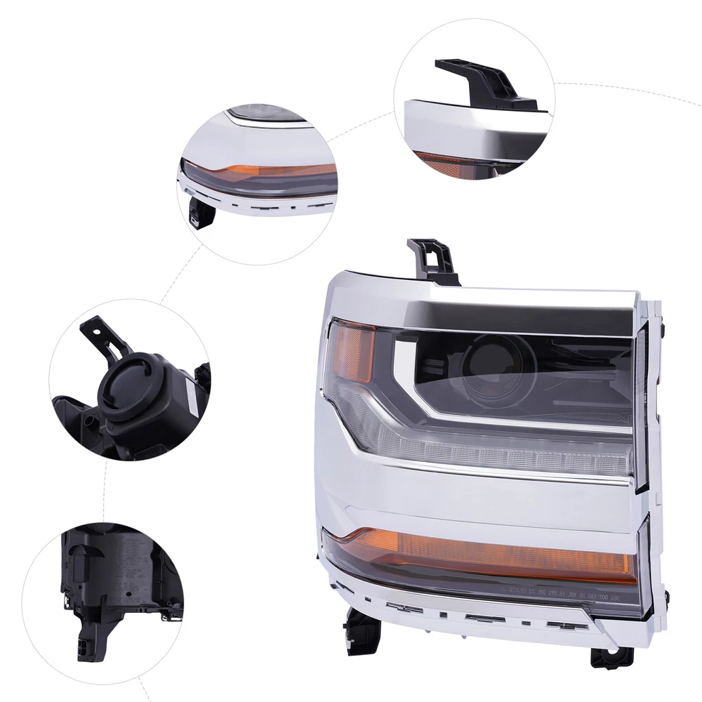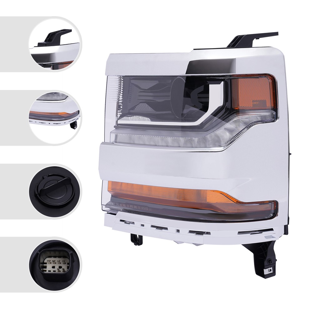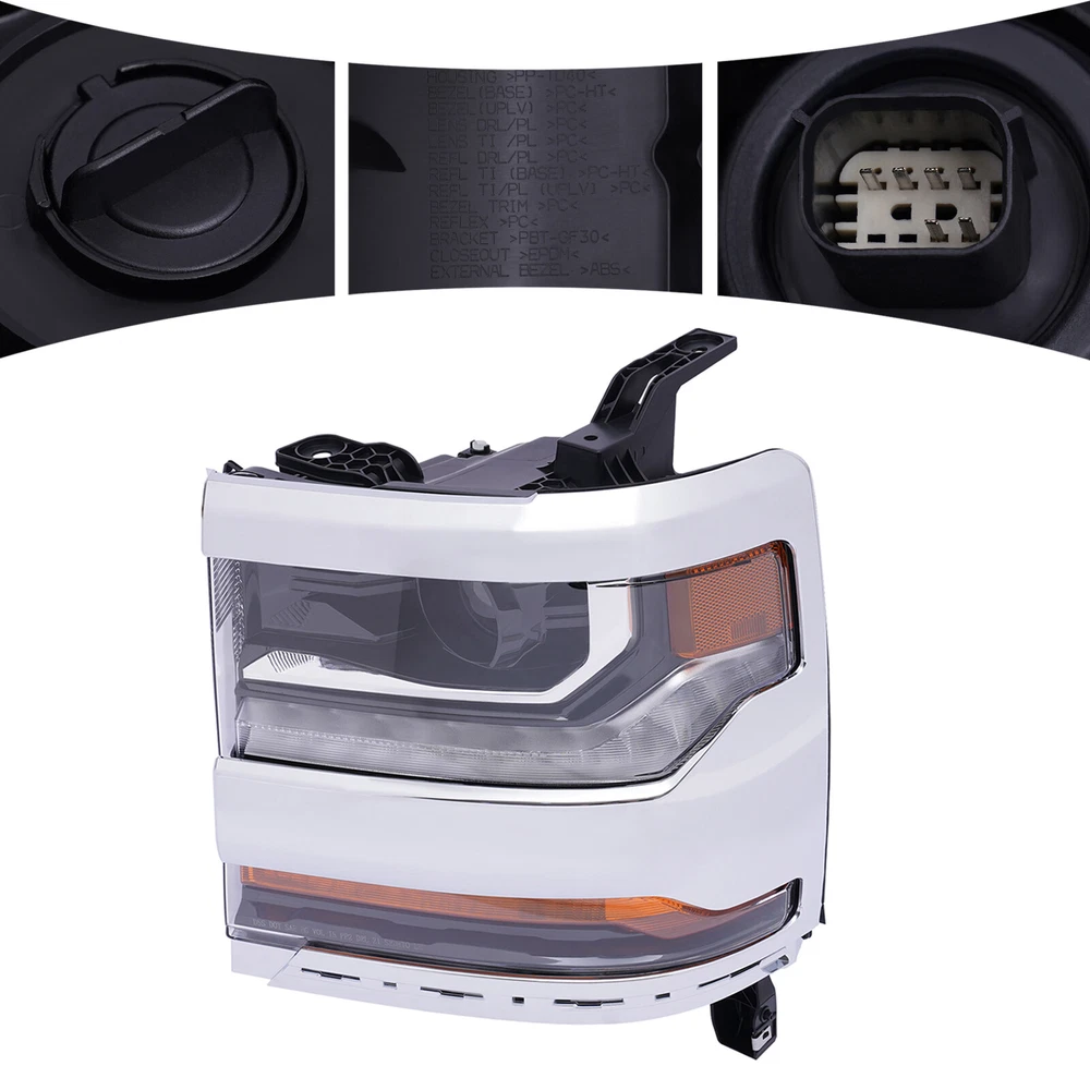 Headlamp Left Driver Side HID Xenon Headlight For Chevy Silverado 1500 2016-2019 For 2016-2019 Chevy Silverado 1500 HID Headlight Headlamp Driver Left Side LH Specifications Interchange Part Number: 84181562 84388723 84181563 84356947 Applicable Models: For SILVERADO 1500 2016-2019 OTN: Parts Link GM2503445/GM2502445 Condition: New Material: Plastic Lens Color: Clear Housing Color: Chrome LED Daytime Running Lights: Yes Light Source Type: Xenon High Beam Type: D5S (Not Included) Low Beam Type: D5S (Not Included) Turn Signal Type: XWY21W(Included) Side Marker Lamp Type: LED (Included) Installation Position: Left Side, Driver Side Way of Use: Direct Replacement Assembly Method: Closed Gross Weight: 3.5kg/7.7lbs Package Size: 40*35*30cm/15.7*13.7*11.8 inch Key Features Good Compatibility: This product is a customized product, specially customized for 2016-2018 Chevy Silverado 1500. So it can be compatible with the adapted models. High-quality Material: This product is made of high-quality plastic, with high hardness, high tightness, strong compression resistance and long service life. Good Customer Service: Communication is the best way to solve problems. If you encounter any problem after purchase, please contact us in time before opening or unpacking the box. We will do our best to solve the problem for you. Highlights Brand New, With High Quality Direct Replacement Trouble-free Installation Stylish Appearance Strong and Durable Exquisite Workmanship Easy to Clean Stable Performance Long Service Life Driver Side Headlight Notes We strongly recommend professional installation. Please contact us if you have any questions. Please allow the slight color difference caused by the shooting light and 1-3cm error due to manual measurement, and make sure you do not mind before you place the order. Fits (As a Reference) For 2016-2019 Chevy Silverado 1500 Package Included 1x Left Headlamp Payment Delivery details Terms of sales About us Contact us Payment We accept ebay payment 。 Fees such as import duties, taxes are not included in the item price or shipping costs. These charges are the buyer's responsibility. Delivery details Shipping: 2-9 working days to: USA Terms of sales We maintain high standards of excellence and strive for hundred percent customer satisfaction. Feedback is very important to us. We hope that you contact us immediately before you give neutral or negative feedback, so that we can address your concerns. It is impossible to address issues if we do not know about them! About us Your satis faction is our ultimate goal. We work hard to earn your trust and future business. Our certified technicians have tested each item before shipping. The unit comes with 1 year limited warranty on all manufacturing defects. a) If you receive a defective item, you may return it or ask for a discount. Please contact us within 14 days after you receive the package. b) What you returned must be intact and in its original packaging as re? u. Customer is responsible for shipping costs of the returned item. c) We will cover the cost of shipping back t with the shipping rate indicated in the registration page. We will send you a new unit or refund the full payment you paid. Thank you. Contact us Business Hour Business Hour: Monday To Friday: 8:30 AM to 5:00 PM (Beijing China time) Due to time zones, our reply to your questions may not be immediately. But within above working time, we will reply your email within 24 hours. If it's non-workdays, please kindly be patient and wait till Monday. Please contact us with ebay message. Please feel free to contact us if you have any questions. Monday To Friday: 8:30 AM to 5:00 PM (Beijing China time) Due to time zones, our reply to your questions may not be immediately. But within above working time, we will reply your email within 24 hours. If it's non-workdays, please kindly be patient and wait till Monday. Please contact us with ebay message. Please feel free to contact us if you have any questions. Brand Unbranded shipping notice Can not ship to Puerto Rico,Alaska/Hawaii Lighting Technology HID Type Headlight Assembly Features DOT-Certified, SAE-Certified Housing Color Chrome Placement on Vehicle Front, Left, Driver Side, LH Lens Color Clear Items Included Include All Bulbs Except D5S HID Bulb Manufacturer Part Number GM2503445/GM2502445 OE/OEM Part Number GM2503445/GM2502445 Manufacturer Warranty 3 Years Superseded Part Number 84181562 84388723 84181563 84356947 Fitment Type Direct Replacement Assembly Type Composite Year 2016 2017 2018 2019 Fits Model For 2016-2019 Chevrolet Silverado 1500 [ HID/Xenon Type ] Part Description Headlamp Assembly, Frt Other Names Composite Assembly, Headlamp Assembly Other Part Number GM2502445 Note HID Type -- Include All Bulbs Except D5S HID Bulb On May 19, 2025 at 18:59:19 PDT, seller added the following information: