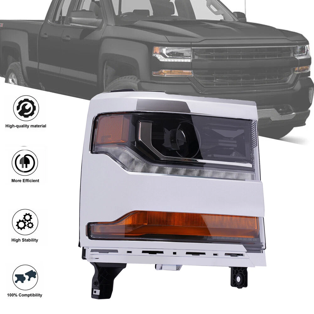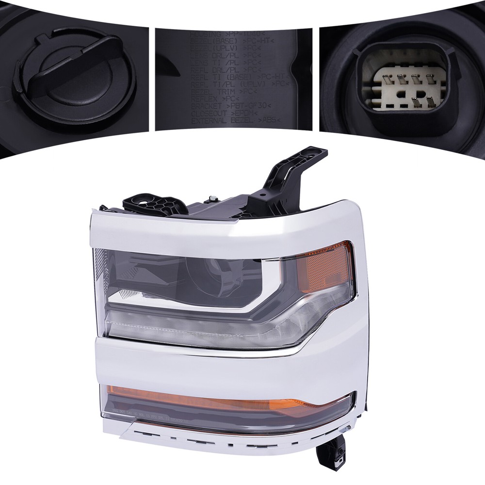 For 16-19 18 Chevy Silverado 1500 LH HID Headlight Headlamp Driver LH Side Headlamp Left Driver Side HID Xenon Headlight For Chevy Silverado 1500 2016-2019 Specifications Interchange Part Number: 84181562 84388723 84181563 84356947 Applicable Models: For SILVERADO 1500 2016-2019 OTN: Parts Link GM2503445/GM2502445 Condition: New Material: Plastic Lens Color: Clear Housing Color: Chrome LED Daytime Running Lights: Yes Light Source Type: Xenon High Beam Type: D5S (Not Included) Low Beam Type: D5S (Not Included) Turn Signal Type: XWY21W(Included) Side Marker Lamp Type: LED (Included) Installation Position: Left Side, Driver Side Way of Use: Direct Replacement Assembly Method: Closed Gross Weight: 3.5kg/7.7lbs Package Size: 40*35*30cm/15.7*13.7*11.8 inch Key Features Good Compatibility: This product is a customized product, specially customized for 2016-2018 Chevy Silverado 1500. So it can be compatible with the adapted models. High-quality Material: This product is made of high-quality plastic, with high hardness, high tightness, strong compression resistance and long service life. Good Customer Service: Communication is the best way to solve problems. If you encounter any problem after purchase, please contact us in time before opening or unpacking the box. We will do our best to solve the problem for you. Highlights Brand New, With High Quality Direct Replacement Trouble-free Installation Stylish Appearance Strong and Durable Exquisite Workmanship Easy to Clean Stable Performance Long Service Life Driver Side Headlight Notes We strongly recommend professional installation. Please contact us if you have any questions. Please allow the slight color difference caused by the shooting light and 1-3cm error due to manual measurement, and make sure you do not mind before you place the order. Fits (As a Reference) For 2016-2019 Chevy Silverado 1500 Package Included 1x Left Headlamp Payment Delivery details Terms of sales About us Contact us Payment We accept ebay payment 。 Fees such as import duties, taxes are not included in the item price or shipping costs. These charges are the buyer's responsibility. Delivery details Shipping: 2-9 working days to: USA Terms of sales We maintain high standards of excellence and strive for hundred percent customer satisfaction. Feedback is very important to us. We hope that you contact us immediately before you give neutral or negative feedback, so that we can address your concerns. It is impossible to address issues if we do not know about them! About us Your satis faction is our ultimate goal. We work hard to earn your trust and future business. Our certified technicians have tested each item before shipping. The unit comes with 1 year limited warranty on all manufacturing defects. a) If you receive a defective item, you may return it or ask for a discount. Please contact us within 14 days after you receive the package. b) What you returned must be intact and in its original packaging as re? u. Customer is responsible for shipping costs of the returned item. c) We will cover the cost of shipping back t with the shipping rate indicated in the registration page. We will send you a new unit or refund the full payment you paid. Thank you. Contact us Business Hour Business Hour: Monday To Friday: 8:30 AM to 5:00 PM (Beijing China time) Due to time zones, our reply to your questions may not be immediately. But within above working time, we will reply your email within 24 hours. If it's non-workdays, please kindly be patient and wait till Monday. Please contact us with ebay message. Please feel free to contact us if you have any questions. Monday To Friday: 8:30 AM to 5:00 PM (Beijing China time) Due to time zones, our reply to your questions may not be immediately. But within above working time, we will reply your email within 24 hours. If it's non-workdays, please kindly be patient and wait till Monday. Please contact us with ebay message. Please feel free to contact us if you have any questions. On May 19, 2025 at 18:56:04 PDT, seller added the following information: