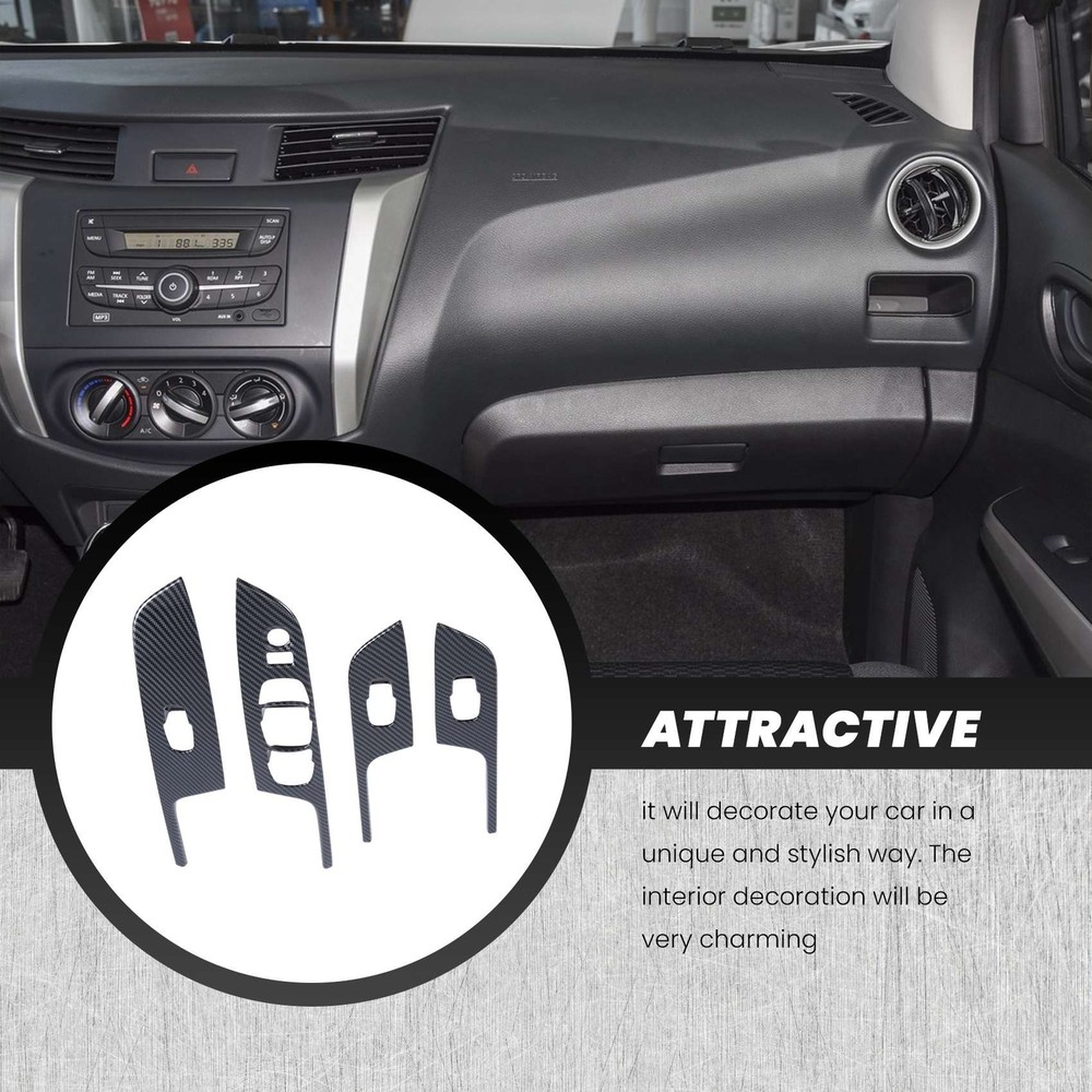 for Navara NP300 2016-2019 Car Window Glass Lift Switch Button Panel Cover5960 High-quality materials: Made of high-quality ABS materials, environmentally friendly, non-, and , you can buy with confidence. Attractive:it decorate your car in a unique and stylish way. The interior decoration be very charming. Convenient installation:It only takes about 2 minutes to install. tape is attached to the back, which is easy to install and does not require any professional tools. Accessory type---Accessories for Navara NP300 2016-2019 accessories. Installation Method: 1. Clean the area and any impurities before mounting this item. 2. Align this item with target-position accordingly and peel off the tape backing. 3. Press the item evenly after proper alignment. 4. Avoid any situation that might wet this item within 24 hours after installation. colour: carbon fiber + black Material: ABS Package Contents: 4 x Window lift switch panel