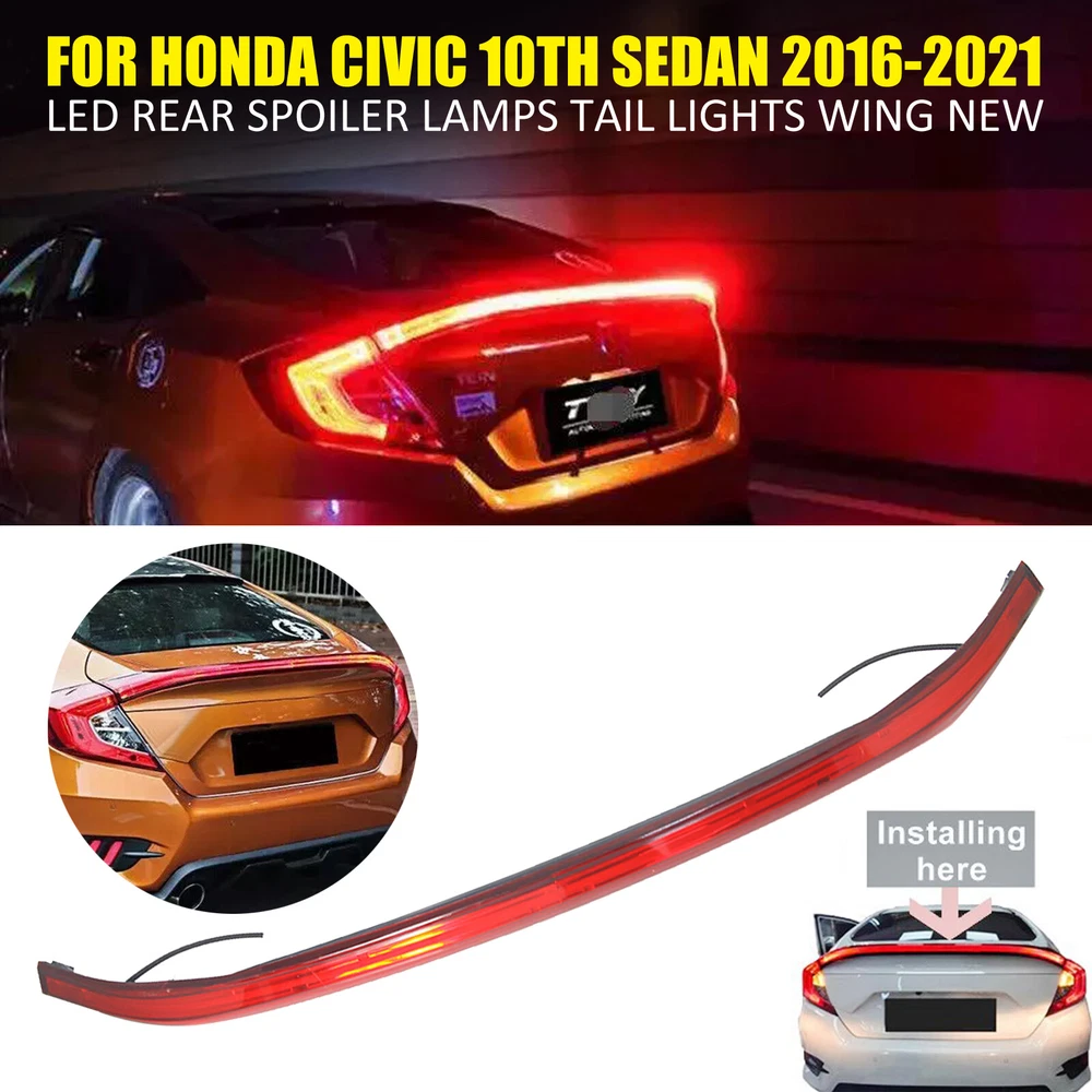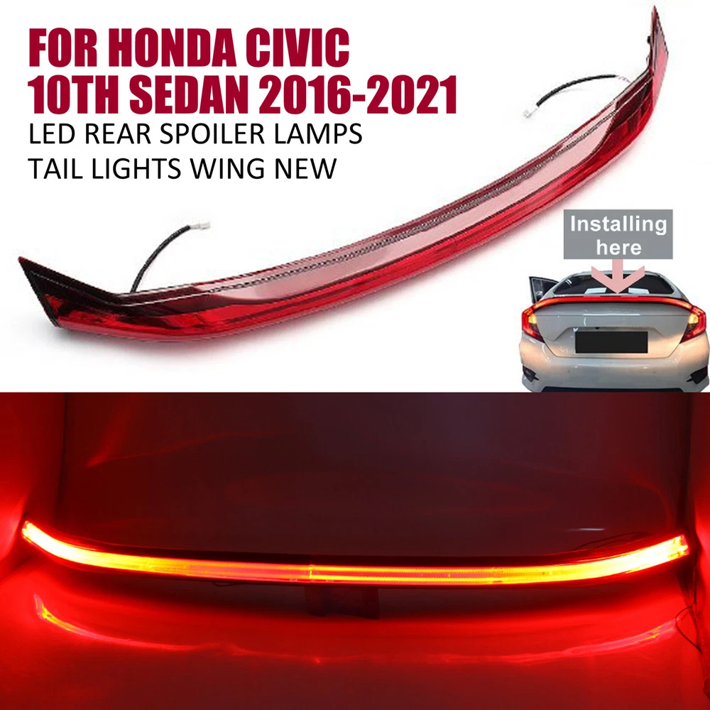 PRODUCT DESCRIPTION Fitment : For Honda Civic 10th 2016-2021 Please make sure your car is the same as the picture we show you before purchase. Features: only for Notchback 100% brand new, shown as pictured Color: as pictures show Material: made of High quality ABS With double side automotive tape on the back Perfect match for the original equipment Made in an ISO 9001 facility to ensure good quality Waterproof and never fade, wear-resisting & scratch-resistant Very light weight, wear-resistant, dirt-resistant Protect the installed area from scratches Decorate car appearances, make your car particular and unique Easy installation, simply peel and stick on Surface must be clean and dry prior to adhering Installation: · Clean the surface which the item is to be applied and insure dry · Determine exact location of item · Remove protective film from adhesive, align carefully and then press firmly to insure proper adhesion · Don't move the item or wash your vehicle within 24 hours after installation