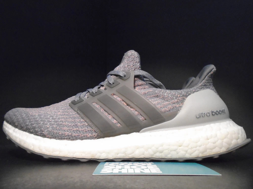 ITEM: 2017 Adidas UltraBoost ‘ 3.0 ’ (grey four/trace pink colorway) - Men's US size 8 STYLE NUMBER: S82022 CONDITION: Worn – Very nice overall condition (white boost midsoles appear slightly dirtier in person, difficult to capture in pictures provided) INCLUDED ACCESSORIES: Original Box ADDITIONAL NOTES: This rare colorway is impossible to find in this size and condition. Guaranteed to be 100% AUTHENTIC MERCHANDISE or your money will be refunded in full. SATISFACTION IS 100% GUARANTEED PAYMENT METHODS: eBay Payment Methods Cash or Credit Card (if picked-up locally @ our shop in Orange, CA) FOOTAGE By THECOOLSHOESHINE! 2740 East Chapman Ave. Orange, CA 92869 SHIPPING & HANDLING: Double boxed via eBay shipping services with delivery confirmation. Please be sure to view all our other listings & contact us with any questions or concerns. Thank you!