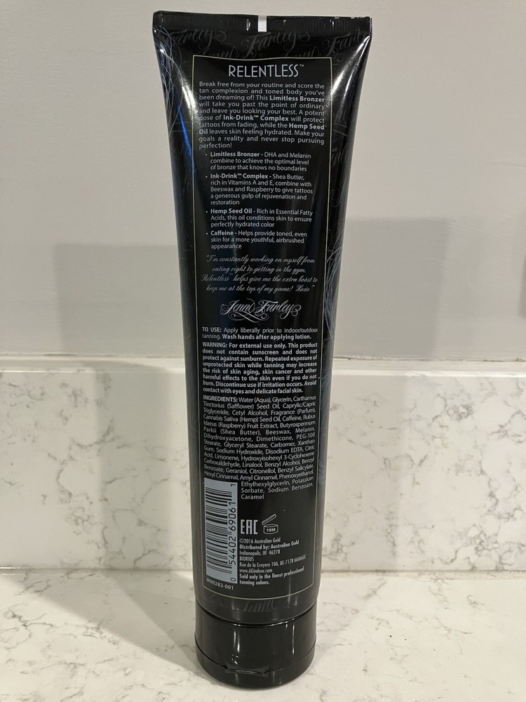 2017 Australian Gold JWOWW Relentless DHA Bronzer 10 oz Tanning Lotion
