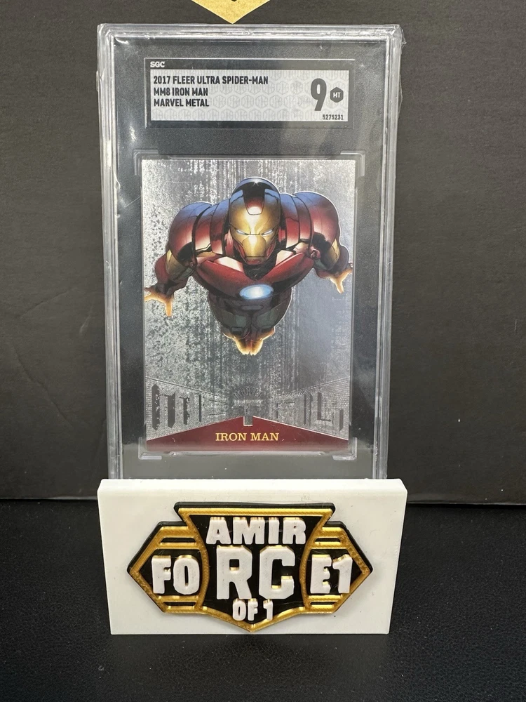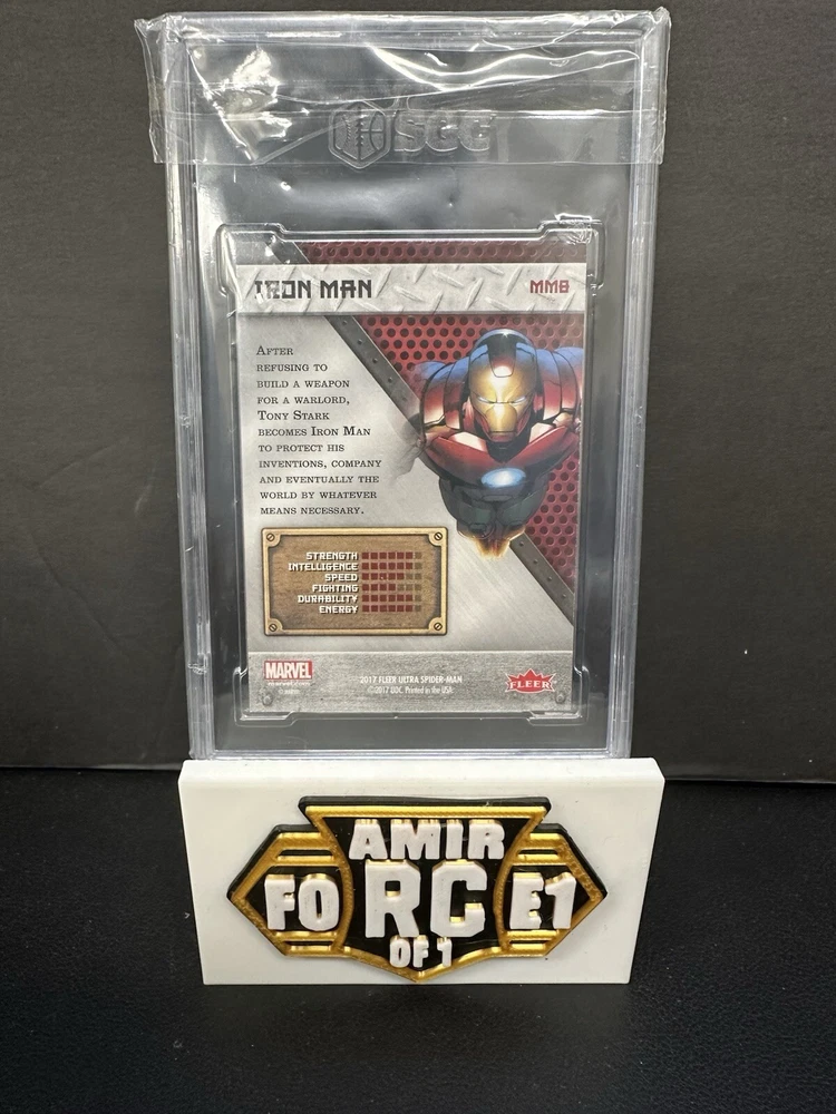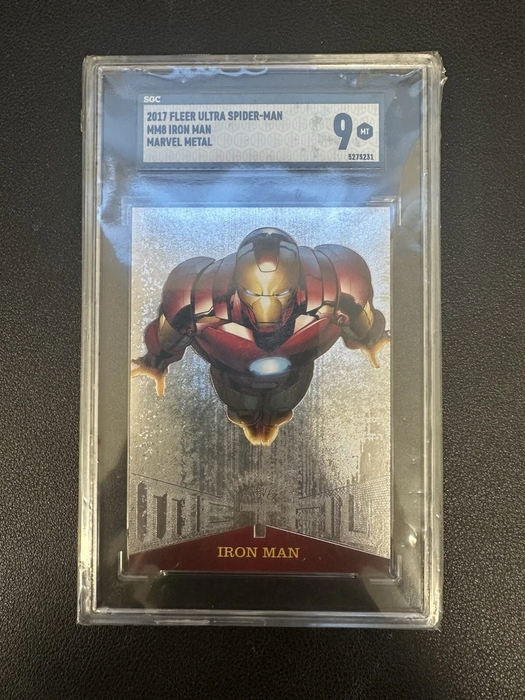 This 2017 Fleer Ultra Marvel Spider-Man trading card features Iron Man in a stunning non-sport design. The card is an original and comes from the Upper Deck manufacturer. It is a single-insert card with the card number MM8 and was produced in 2017. The card is part of the Marvel Metal collection and features Iron Man in all his glory. The card is graded SGC 9 and is a must-have for any collector of Marvel non-sport trading cards. The card is perfect for fans of Iron Man and Spider-Man and is a great addition to any collection. Get your hands on this amazing card today!