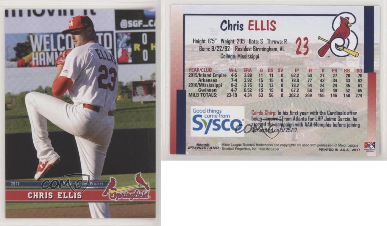 2017 Grandstand Springfield Cardinals Stadium Giveaway - [Base] #_CHEL Chris Ellis - Rookie - Baseball Card - Featuring the Springfield Cardinals - Featuring Chris Ellis Search for more: 2017 Grandstand Springfield Cardinals Stadium Giveaway Search for more: 2017 Grandstand Springfield Cardinals Stadium Giveaway - [Base] View all of our Listings Auctions Buy It Now About Us Located in the beautiful Pacific Northwest, COMC (Check Out My Cards) is the world's largest consignment service for trading card singles. More than 10,000 people have used our consignment service to list over 50 million trading cards. We currently house 20 million cards, each listed for sale with front and back images of the actual card. Find out how we can help you consign your items on eBay by contacting us through eBay messaging. COMC -- "The Safe & Easy Way to Buy & Sell" Representative Image - Select Specific Item above to see image of actual item Representative Image - Select Specific Item above to see image of actual item Raw Condition for Modern Cards Unless otherwise noted, raw modern cards are listed in Near Mint-Mint condition or better. A NM-MT card appears to be Mint at first glance, but upon closer inspection, may exhibit some of the following: minor print defects (e.g. roller marks, print line, dimple), minor scratches, slight edge wear, and slight corner wear. Centering is clearly visible in the images provided and does not factor into our condition assessment. Raw Condition for Vintage Cards Unless otherwise noted, raw vintage cards are listed in Excellent condition or better. An EX card may exhibit some of the following: minor rounding of corners, surface wear, print defects, light scratches, and slight edge wear/chipping. Centering is clearly visible in the images provided and does not factor into our condition assessment. Domestic Shipping Combined shipping for multiple items is available. To receive combined shipping, please ensure all desired items are in your eBay shopping cart before proceeding to checkout. eBay limits orders to 40 items per order. We automatically combine multiple orders placed on the same day. If you place multiple orders on the same day, please contact us to request a refund of applicable shipping costs. Signature confirmation may be required on invoices over $400. Raw cards are shipped in toploaders. International Shipping COMC offers eBay's International Shipping (EIS) for international orders under $2,500* (see country exceptions below). All duties and import fees are paid at checkout; in the rare event that there are additional import fees upon delivery, these are borne by the buyer. EIS packages route through a shipping hub in Erlanger, KY before shipping to their final destination. Please note that EIS does not allow for combined shipments. The shipping rates are determined by eBay and cannot be adjusted. *Maximum sale price exceptions: Colombia, Kuwait ($2,000); Taiwan ($1,539); Chile, Costa Rica, Guatemala, Honduras, Trinidad and Tobago ($1,000); Antigua and Barbuda, Aruba, Belize, Dominica, Grenada, Philippines, Saint Kitts and Nevis, Saint Lucia, Montserrat, Turks and Caicos Islands ($500); Dominican Republic, El Salvador ($200). Please request a shipping quote through eBay messaging for orders that exceed the maximum sale price supported by eBay's International Shipping. You will be responsible for all duties and import fees for international orders shipped outside the EIS. Raw cards are shipped in toploaders. Payment COMC does not accept offers on our cards through our eBay storefront. COMC utilizes eBay’s managed payments system. If you are experiencing difficulties making a payment, please contact eBay for assistance. Return Policy Returns are only accepted on the rare occasion the item is not as described. If you are making a return, please initiate the return process through eBay so a mailing label can be provided for you. Prior to listing, our expert team carefully assessed this item to represent it accurately. Please review the description and high-definition images prior to purchasing to ensure this item meets your satisfaction. We welcome you to contact us if you have further questions about this item. Trust and Integrity COMC carefully assesses each item consigned to us to prevent fraudulent items from entering the marketplace. If you believe an item offered on COMC may be fraudulent, please contact us with details so we can investigate the issue. Items we determine are outside our supported items policy may be removed. Last Modified: 12/7/2024 2:15:53 PM PDT
