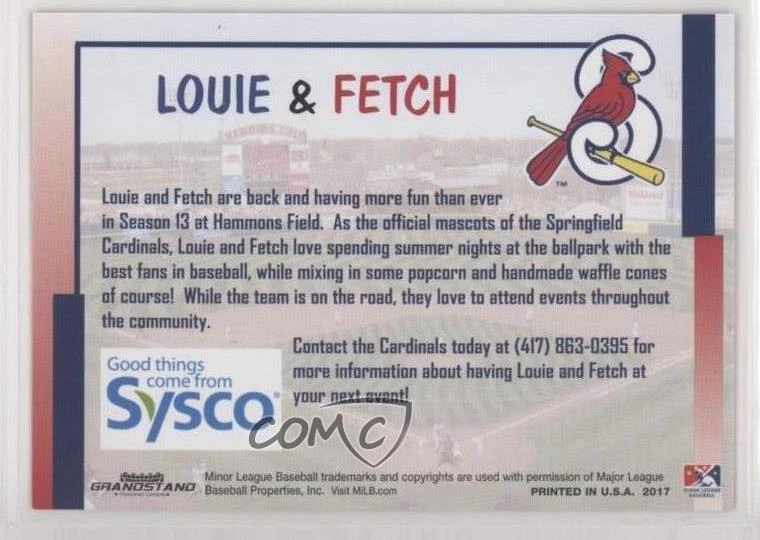 2017 Grandstand Springfield Cardinals Stadium Giveaway - [Base] #_LOFE Louie & Fetch - Baseball Card - Featuring the Springfield Cardinals - Featuring Louie and Fetch Search for more: 2017 Grandstand Springfield Cardinals Stadium Giveaway Search for more: 2017 Grandstand Springfield Cardinals Stadium Giveaway - [Base] View all of our Listings Auctions Buy It Now About Us Located in the beautiful Pacific Northwest, COMC (Check Out My Cards) is the world's largest consignment service for trading card singles. More than 10,000 people have used our consignment service to list over 50 million trading cards. We currently house 20 million cards, each listed for sale with front and back images of the actual card. Find out how we can help you consign your items on eBay by contacting us through eBay messaging. COMC -- "The Safe & Easy Way to Buy & Sell" Representative Image - Select Specific Item above to see image of actual item Representative Image - Select Specific Item above to see image of actual item Raw Condition for Modern Cards Unless otherwise noted, raw modern cards are listed in Near Mint-Mint condition or better. A NM-MT card appears to be Mint at first glance, but upon closer inspection, may exhibit some of the following: minor print defects (e.g. roller marks, print line, dimple), minor scratches, slight edge wear, and slight corner wear. Centering is clearly visible in the images provided and does not factor into our condition assessment. Raw Condition for Vintage Cards Unless otherwise noted, raw vintage cards are listed in Excellent condition or better. An EX card may exhibit some of the following: minor rounding of corners, surface wear, print defects, light scratches, and slight edge wear/chipping. Centering is clearly visible in the images provided and does not factor into our condition assessment. Domestic Shipping Combined shipping for multiple items is available. To receive combined shipping, please ensure all desired items are in your eBay shopping cart before proceeding to checkout. eBay limits orders to 40 items per order. We automatically combine multiple orders placed on the same day. If you place multiple orders on the same day, please contact us to request a refund of applicable shipping costs. Signature confirmation may be required on invoices over $400. Raw cards are shipped in toploaders. International Shipping COMC offers eBay's International Shipping (EIS) for international orders under $2,500* (see country exceptions below). All duties and import fees are paid at checkout; in the rare event that there are additional import fees upon delivery, these are borne by the buyer. EIS packages route through a shipping hub in Erlanger, KY before shipping to their final destination. Please note that EIS does not allow for combined shipments. The shipping rates are determined by eBay and cannot be adjusted. *Maximum sale price exceptions: Colombia, Kuwait ($2,000); Taiwan ($1,539); Chile, Costa Rica, Guatemala, Honduras, Trinidad and Tobago ($1,000); Antigua and Barbuda, Aruba, Belize, Dominica, Grenada, Philippines, Saint Kitts and Nevis, Saint Lucia, Montserrat, Turks and Caicos Islands ($500); Dominican Republic, El Salvador ($200). Please request a shipping quote through eBay messaging for orders that exceed the maximum sale price supported by eBay's International Shipping. You will be responsible for all duties and import fees for international orders shipped outside the EIS. Raw cards are shipped in toploaders. Payment COMC does not accept offers on our cards through our eBay storefront. COMC utilizes eBay’s managed payments system. If you are experiencing difficulties making a payment, please contact eBay for assistance. Return Policy Returns are only accepted on the rare occasion the item is not as described. If you are making a return, please initiate the return process through eBay so a mailing label can be provided for you. Prior to listing, our expert team carefully assessed this item to represent it accurately. Please review the description and high-definition images prior to purchasing to ensure this item meets your satisfaction. We welcome you to contact us if you have further questions about this item. Trust and Integrity COMC carefully assesses each item consigned to us to prevent fraudulent items from entering the marketplace. If you believe an item offered on COMC may be fraudulent, please contact us with details so we can investigate the issue. Items we determine are outside our supported items policy may be removed. Last Modified: 1/17/2025 2:01:24 AM PDT