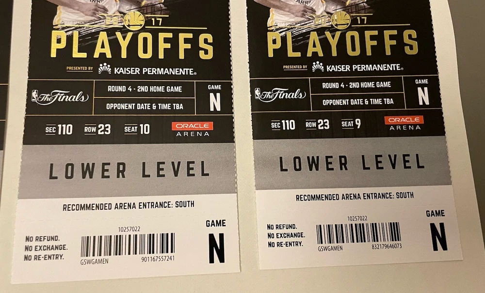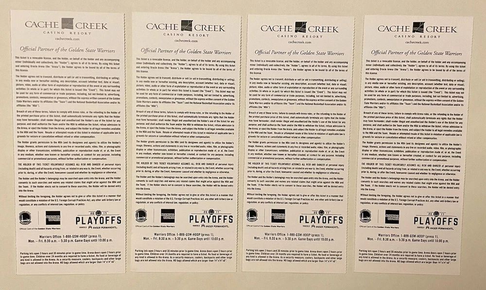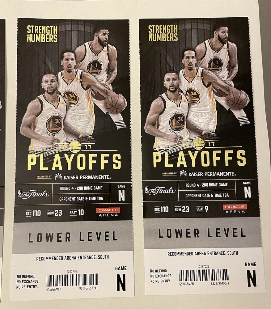 LOT OF 4 June 4, 2017 Golden State Warriors 132 - Cleveland Cavaliers 113 Kevin Durant 33pts 13reb 6ast LeBron James 29pts 11reb 14ast Steph Curry 32pts 10reb 11ast LeBron & Steph BOTH triple doubles Lebron averaged a Triple Double in this series Durant was MVP Large stub 3in X 7.25in