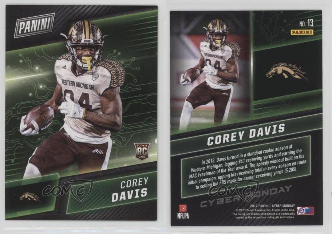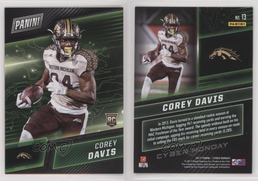 2017 Panini Cyber Monday - [Base] #13 Corey Davis - Rookie - MultiSport Card - Featuring the Western Michigan Broncos - Featuring Corey Davis Search for more: 2017 Panini Cyber Monday Search for more: 2017 Panini Cyber Monday - [Base] View all of our Listings Auctions Buy It Now About Us Located in the beautiful Pacific Northwest, COMC (Check Out My Cards) is the world's largest consignment service for trading card singles. More than 10,000 people have used our consignment service to list over 50 million trading cards. We currently house 20 million cards, each listed for sale with front and back images of the actual card. Find out how we can help you consign your items on eBay by contacting us through eBay messaging. COMC -- "The Safe & Easy Way to Buy & Sell" Representative Image - Select Specific Item above to see image of actual item Representative Image - Select Specific Item above to see image of actual item Raw Condition for Modern Cards Unless otherwise noted, raw modern cards are listed in Near Mint-Mint condition or better. A NM-MT card appears to be Mint at first glance, but upon closer inspection, may exhibit some of the following: minor print defects (e.g. roller marks, print line, dimple), minor scratches, slight edge wear, and slight corner wear. Centering is clearly visible in the images provided and does not factor into our condition assessment. Raw Condition for Vintage Cards Unless otherwise noted, raw vintage cards are listed in Excellent condition or better. An EX card may exhibit some of the following: minor rounding of corners, surface wear, print defects, light scratches, and slight edge wear/chipping. Centering is clearly visible in the images provided and does not factor into our condition assessment. Domestic Shipping Combined shipping for multiple items is available. To receive combined shipping, please ensure all desired items are in your eBay shopping cart before proceeding to checkout. eBay limits orders to 40 items per order. We automatically combine multiple orders placed on the same day. If you place multiple orders on the same day, please contact us to request a refund of applicable shipping costs. Signature confirmation may be required on invoices over $400. Raw cards are shipped in toploaders. International Shipping COMC offers eBay's International Shipping (EIS) for international orders under $2,500* (see country exceptions below). All duties and import fees are paid at checkout; in the rare event that there are additional import fees upon delivery, these are borne by the buyer. EIS packages route through a shipping hub in Erlanger, KY before shipping to their final destination. Please note that EIS does not allow for combined shipments. The shipping rates are determined by eBay and cannot be adjusted. *Maximum sale price exceptions: Colombia, Kuwait ($2,000); Taiwan ($1,539); Chile, Costa Rica, Guatemala, Honduras, Trinidad and Tobago ($1,000); Antigua and Barbuda, Aruba, Belize, Dominica, Grenada, Philippines, Saint Kitts and Nevis, Saint Lucia, Montserrat, Turks and Caicos Islands ($500); Dominican Republic, El Salvador ($200). Please request a shipping quote through eBay messaging for orders that exceed the maximum sale price supported by eBay's International Shipping. You will be responsible for all duties and import fees for international orders shipped outside the EIS. Raw cards are shipped in toploaders. Payment COMC does not accept offers on our cards through our eBay storefront. COMC utilizes eBay’s managed payments system. If you are experiencing difficulties making a payment, please contact eBay for assistance. Return Policy Returns are only accepted on the rare occasion the item is not as described. If you are making a return, please initiate the return process through eBay so a mailing label can be provided for you. Prior to listing, our expert team carefully assessed this item to represent it accurately. Please review the description and high-definition images prior to purchasing to ensure this item meets your satisfaction. We welcome you to contact us if you have further questions about this item. Trust and Integrity COMC carefully assesses each item consigned to us to prevent fraudulent items from entering the marketplace. If you believe an item offered on COMC may be fraudulent, please contact us with details so we can investigate the issue. Items we determine are outside our supported items policy may be removed. Last Modified: 12/31/2024 8:48:34 AM PDT