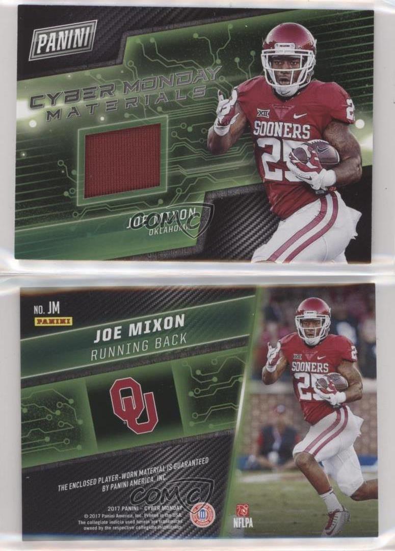 2017 Panini Cyber Monday - Cyber Monday Materials #JM Joe Mixon - Rookie - MultiSport Card - Featuring the Oklahoma Sooners - Featuring Joe Mixon Search for more: 2017 Panini Cyber Monday Search for more: 2017 Panini Cyber Monday - Cyber Monday Materials View all of our Listings Auctions Buy It Now About Us Located in the beautiful Pacific Northwest, COMC (Check Out My Cards) is the world's largest consignment service for trading card singles. More than 10,000 people have used our consignment service to list over 50 million trading cards. Find out how we can help you consign your items on eBay by contacting us through eBay messaging. COMC -- "The Safe & Easy Way to Buy & Sell" Representative Image - Select Specific Item above to see image of actual item Representative Image - Select Specific Item above to see image of actual item Raw Condition for Modern Cards Unless otherwise noted, raw modern cards are listed in Near Mint-Mint condition or better. A NM-MT card appears to be Mint at first glance, but upon closer inspection, may exhibit some of the following: minor print defects (e.g. roller marks, print line, dimple), minor scratches, slight edge wear, and slight corner wear. Centering is clearly visible in the images provided and does not factor into our condition assessment. Raw Condition for Vintage Cards Unless otherwise noted, raw vintage cards are listed in Excellent condition or better. An EX card may exhibit some of the following: minor rounding of corners, surface wear, print defects, light scratches, and slight edge wear/chipping. Centering is clearly visible in the images provided and does not factor into our condition assessment. Domestic Shipping Combined shipping for multiple items is available. To receive combined shipping, please ensure all desired items are in your eBay shopping cart before proceeding to checkout. eBay limits orders to 40 items per order. We automatically combine multiple orders placed on the same day. If you place multiple orders on the same day, please contact us to request a refund of applicable shipping costs. Signature confirmation may be required on invoices over $400. All cards are protected and shipped securely. International Shipping COMC offers eBay's International Shipping (EIS) for international orders under $2,500* (see country exceptions below). All duties and import fees are paid at checkout; in the rare event that there are additional import fees upon delivery, these are borne by the buyer. EIS packages route through a shipping hub in Erlanger, KY before shipping to their final destination. Please note that EIS does not allow for combined shipments. The shipping rates are determined by eBay and cannot be adjusted. *Maximum sale price exceptions: Colombia, Kuwait ($2,000); Taiwan ($1,539); Chile, Costa Rica, Guatemala, Honduras, Trinidad and Tobago ($1,000); Antigua and Barbuda, Aruba, Belize, Dominica, Grenada, Philippines, Saint Kitts and Nevis, Saint Lucia, Montserrat, Turks and Caicos Islands ($500); Dominican Republic, El Salvador ($200). Please request a shipping quote through eBay messaging for orders that exceed the maximum sale price supported by eBay's International Shipping. You will be responsible for all duties and import fees for international orders shipped outside the EIS. All cards are protected and shipped securely. Payment COMC does not accept offers on our cards through our eBay storefront. COMC utilizes eBay’s managed payments system. If you are experiencing difficulties making a payment, please contact eBay for assistance. Return Policy Returns are only accepted on the rare occasion the item is not as described. If you are making a return, please initiate the return process through eBay so a mailing label can be provided for you. Prior to listing, our expert team carefully assessed this item to represent it accurately. Please review the description and high-definition images prior to purchasing to ensure this item meets your satisfaction. We welcome you to contact us if you have further questions about this item. Trust and Integrity COMC carefully assesses each item consigned to us to prevent fraudulent items from entering the marketplace. If you believe an item offered on COMC may be fraudulent, please contact us with details so we can investigate the issue. Items we determine are outside our supported items policy may be removed. Last Modified: 4/7/2025 6:44:53 PM PDT