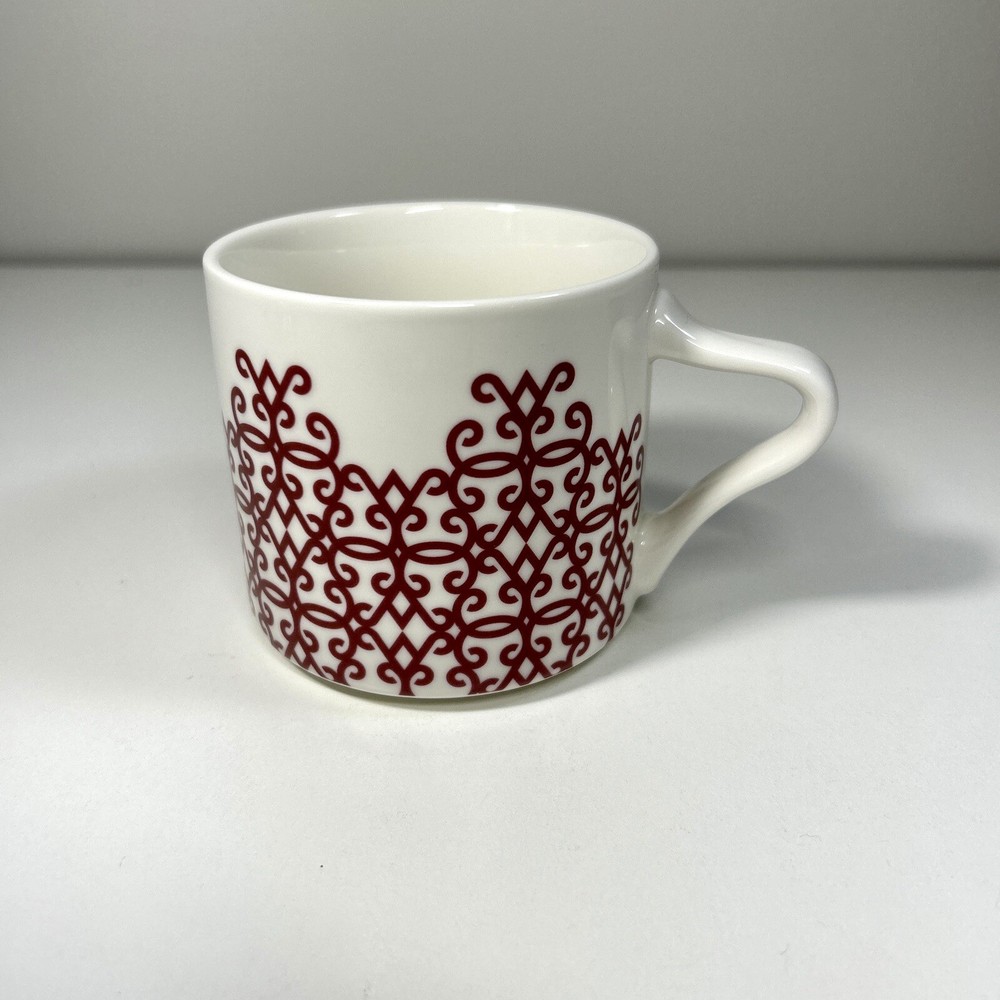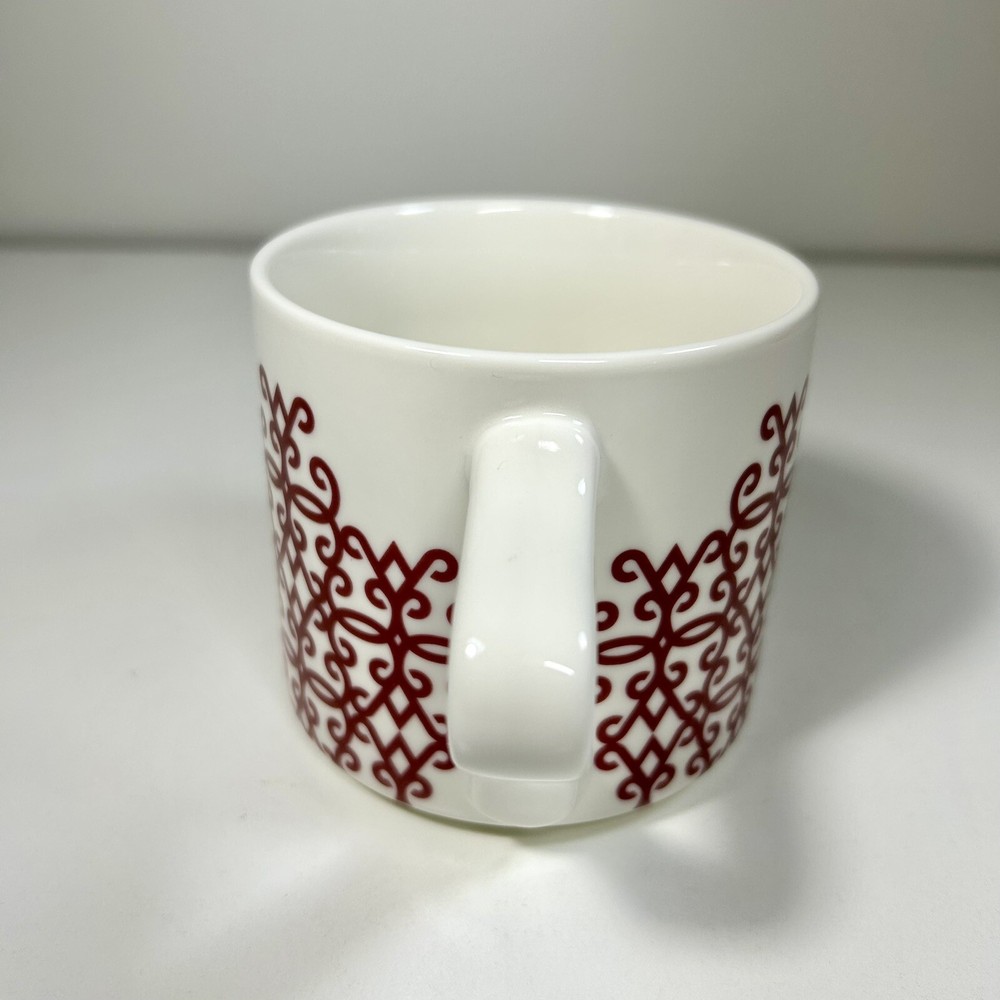 2017 12 oz Starbucks Coffee Mug Red Damask Scroll Diamond Filigree White Ceramic Please See Picture For Condition of Item and Details ! Thank You For Looking and Have a Great Day!