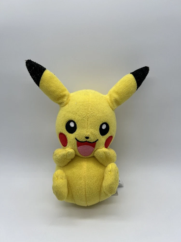 2017 TOMY Pikachu Pokemon 9" Sitting Plush Smiling Happy Yellow Stuffed Toy Used. Item: N16