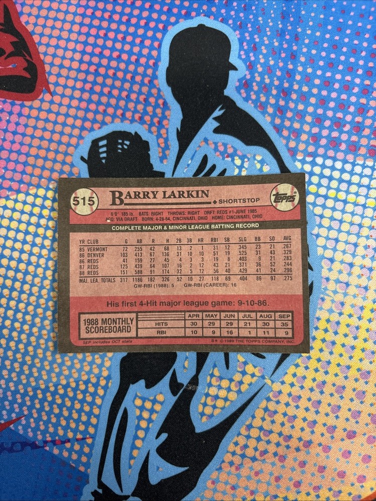 This is a 2017 Topps baseball trading card featuring Barry Larkin of the Cincinnati Reds. The card is part of the Rediscover Topps Bronze Foil Buybacks set, which includes original 2017 Topps cards that have been reissued with a bronze foil stamp. This particular card is a short print, numbered 515, and is in near mint or better condition. It is not autographed and is ungraded, making it a desirable collectible for fans of Barry Larkin and the Cincinnati Reds.