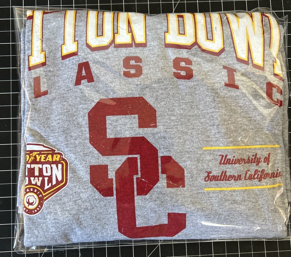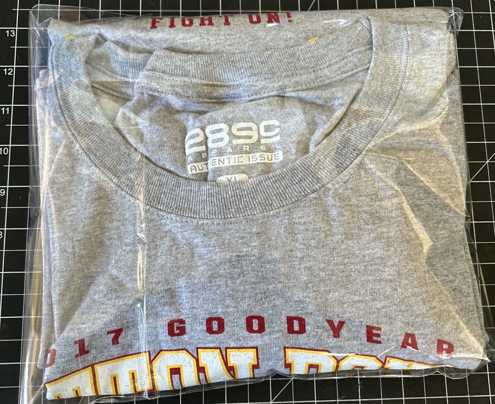 Show off your team spirit with this officially licensed 2017 USC Good Year Cotton Bowl Gray Fight On Trojans Long Sleeve Shirt. This shirt is perfect for any USC football fan and features the team's colors and logo. Made for men in size XL, this shirt is great for game day or any casual occasion. Represent your favorite team with this comfortable and stylish shirt. Great for football season or as a gift for any USC fan. Wear it with pride and cheer on the Trojans to victory! Pit to pit=23 inches
