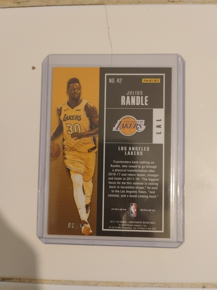 2017-18 Contenders Julius Randle Gold Season Ticket /10. Condition is Ungraded. Shipped with USPS Ground Advantage.